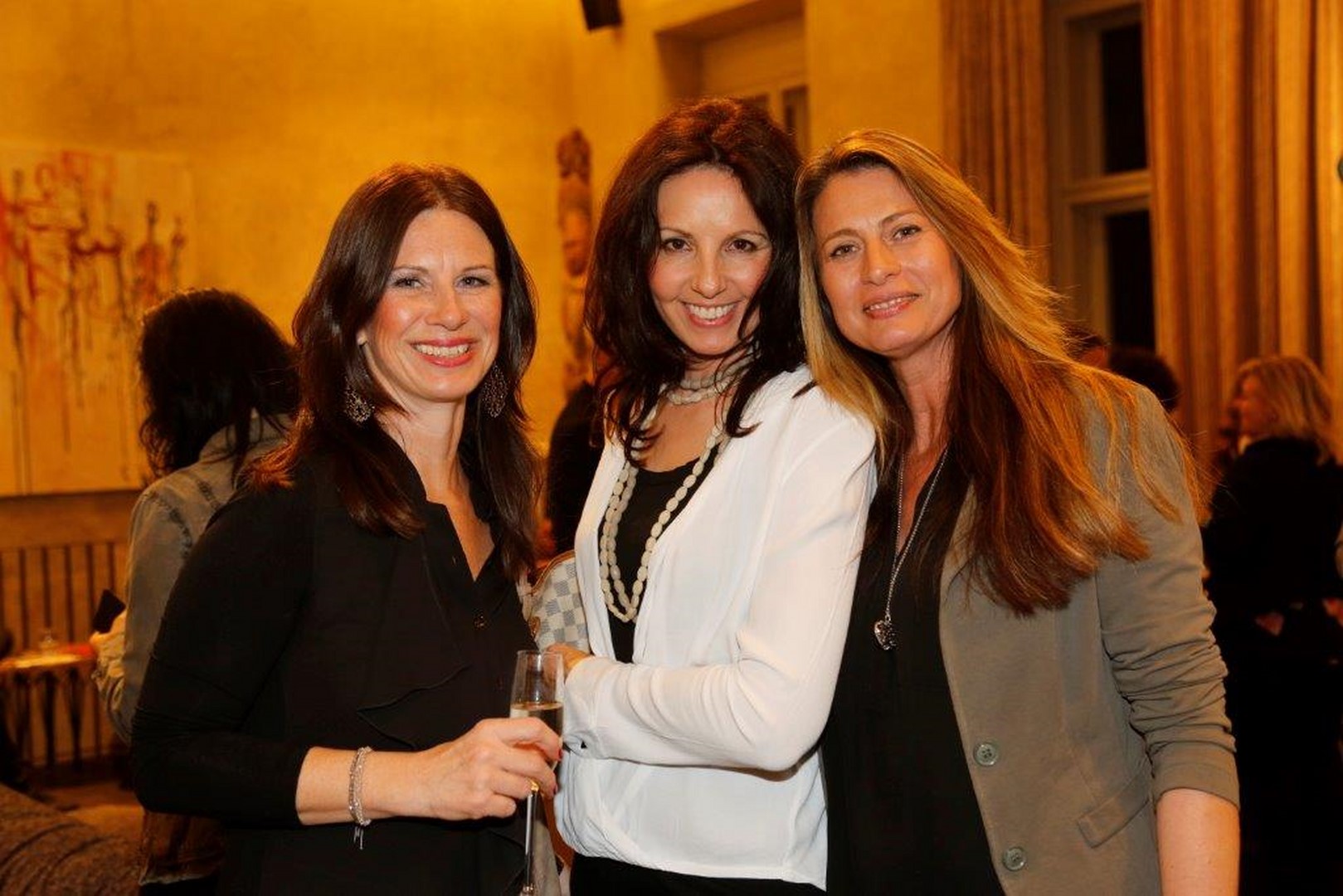 Journalistin/Autorin Tina Veit-Fuchs und Journalistin/Bloggerin Hedi Grager bei der Vernissage Femmes choc bei Gangl Interieur, hier mit Malerin Asma Eva Kocjan (Foto Manfred Lach)