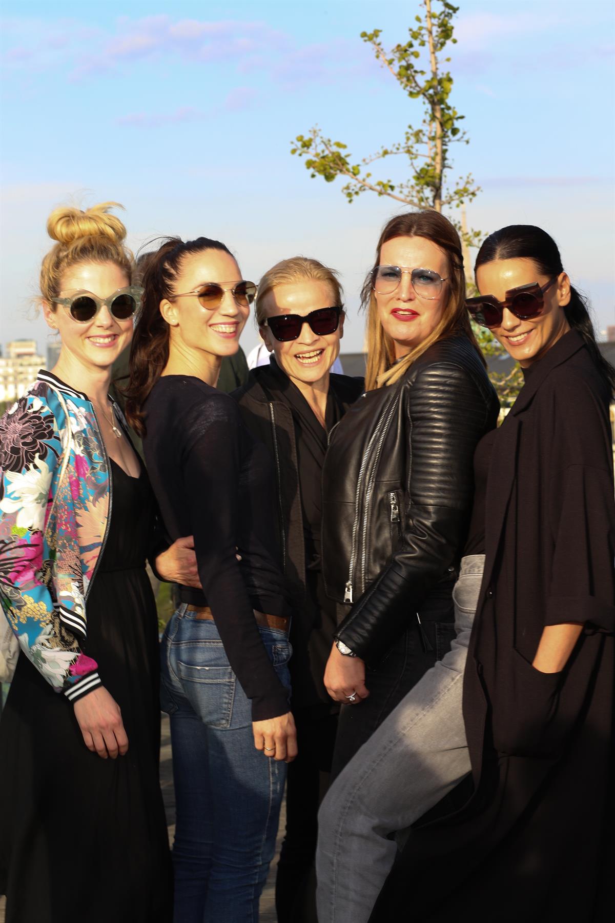Großes Beitragsfoto: Bei herrlichem Sonnenschein probierten Sigrid Spörk, Maddalena Hirschal, Michou Friesz, Katharina Schlager und Edita Malovčić die neue Brillenkollektion (Foto Sigrid Mayer)