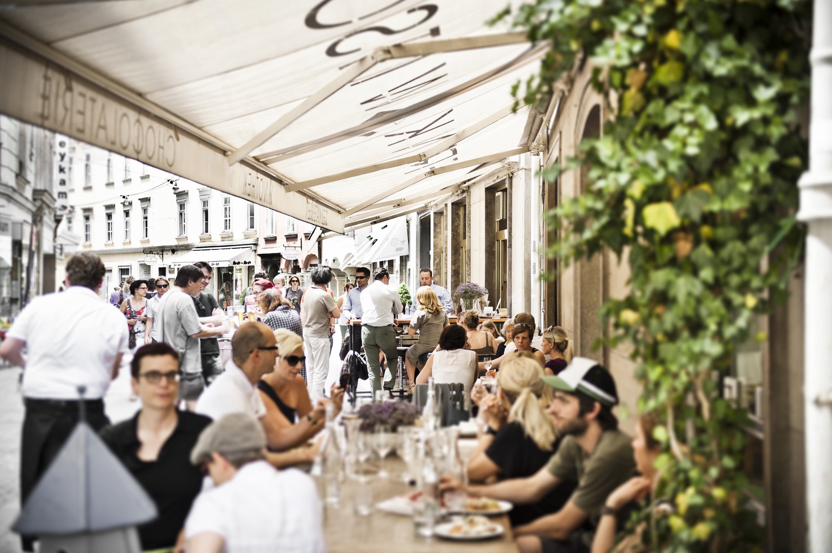 Auch der Gastgarten in der Stempfergasse verwandelt sich mit einer über 20 Meter langen Sitzbank in eine Terrazza, die das inspirierende Piazza-Lebensgefühl nach Graz bringt.