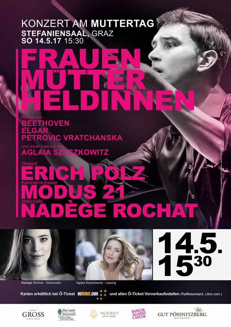 „Frauen, Mütter, Heldinnen“ – unter diesem Titel laden Dirigent Erich Polz und sein Orchester Modus 21 am Muttertag, den 14. Mai, in den Grazer Stefaniensaal. Dieses Konzert ist allen Frauen gewidmet, um ihren Leistungen gebührenden Respekt zu zollen.
