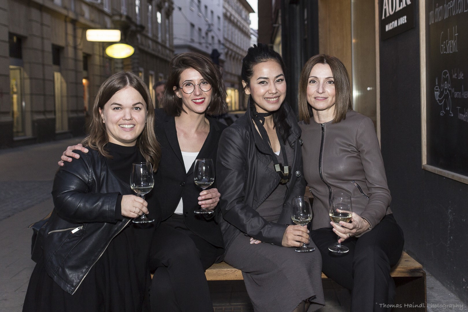 BrillenQuartier-‚Boss‘ Christian Potisk, Autor Reinhard Sudy, Journalistin und Bloggerin Hedi Grager und Künstlerin Magdalena Tabeau genossen die Luxury Shopping Night bei einem guten Gläschen von der Bar Albert (Foto Thomas Haindl)