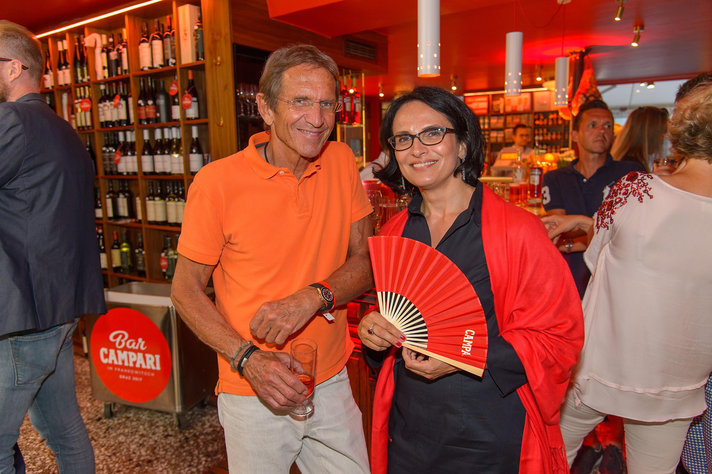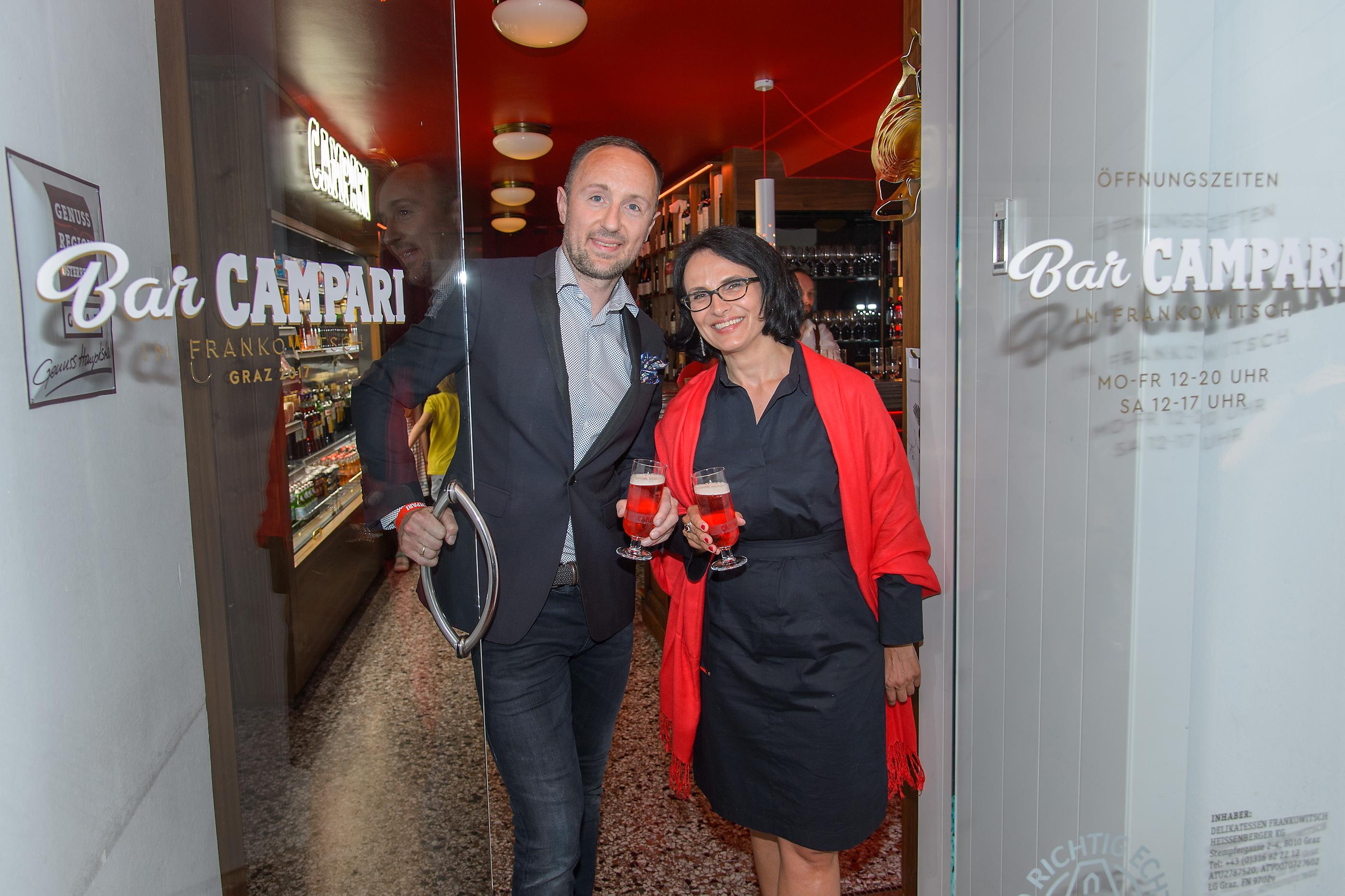 Simone Edler, Geschäftsführerin von Campari Austria, und Stefan Heissenberger, ‚Hausherr‘ Frankowitsch, freuten sich über die vielen prominenten Grazer, die ihrer Einladung folgten und mit ihnen die Eröffnung dieser Aperitivo-Bar feierten.
