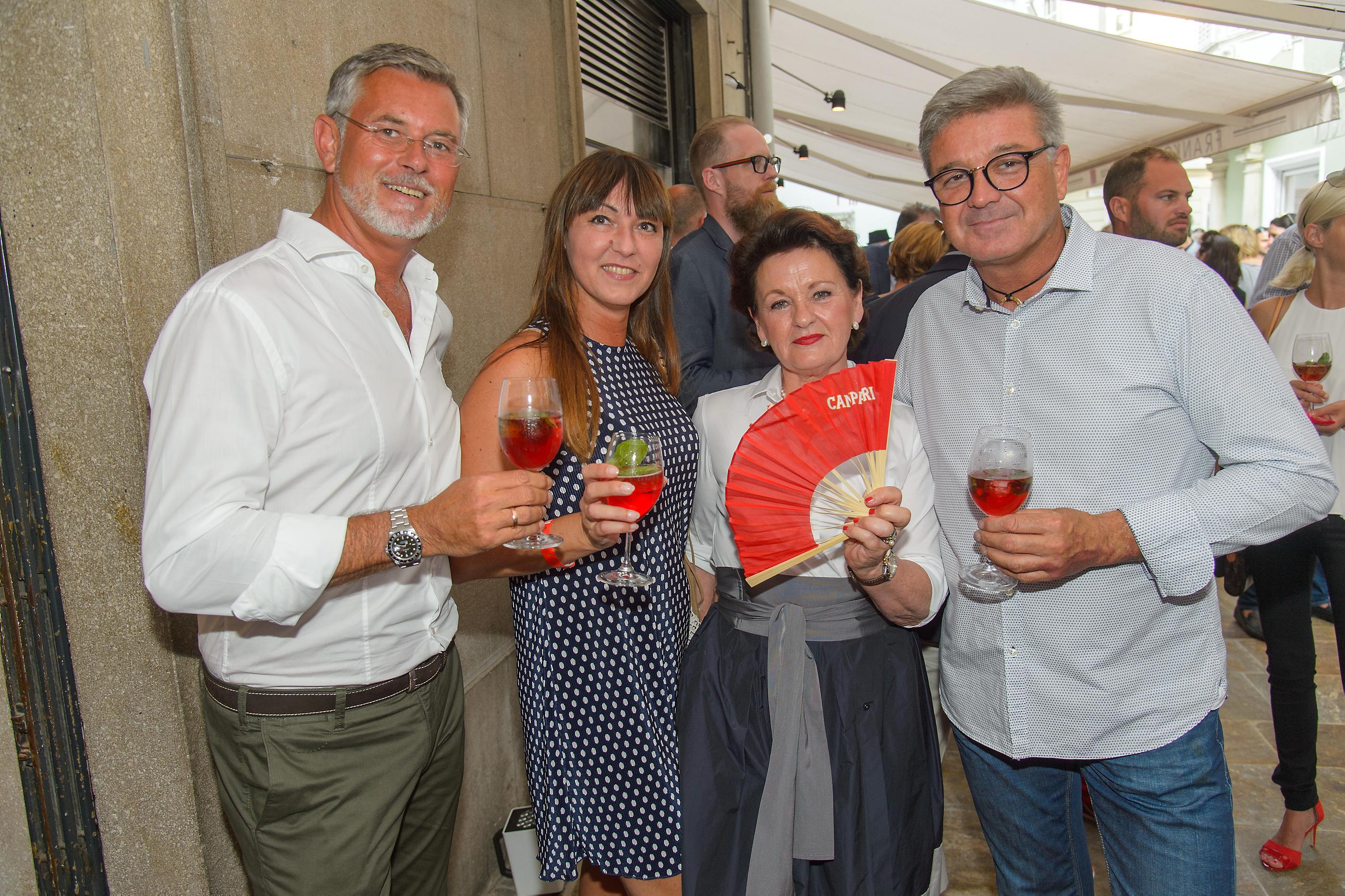 Eröffnung der Bar Campari im ‚Brötchen‘ Frankowitsch in Graz: Geschäftsführerin Campari Austria Simone Edler, Architekt Gerd Zehetner, ‚Hausherr‘ Stefan Heissenberger und Designerin Laura Karasinski (Foto Andreas Tischler)