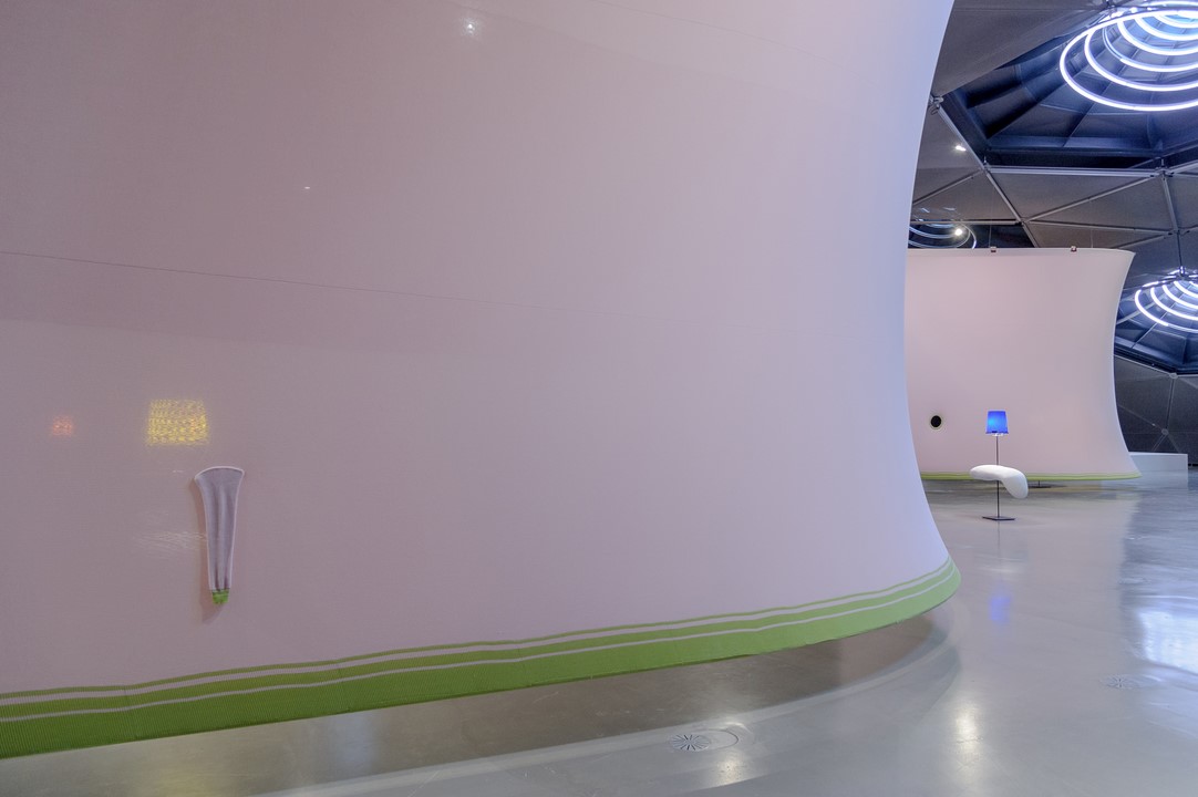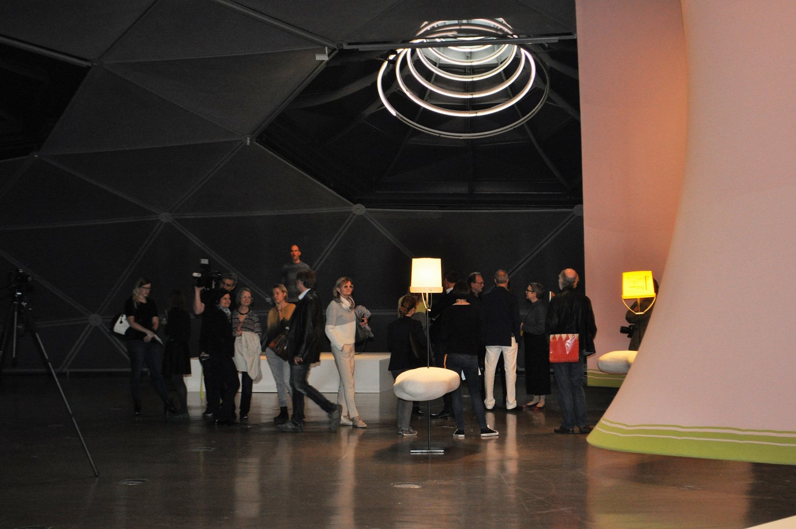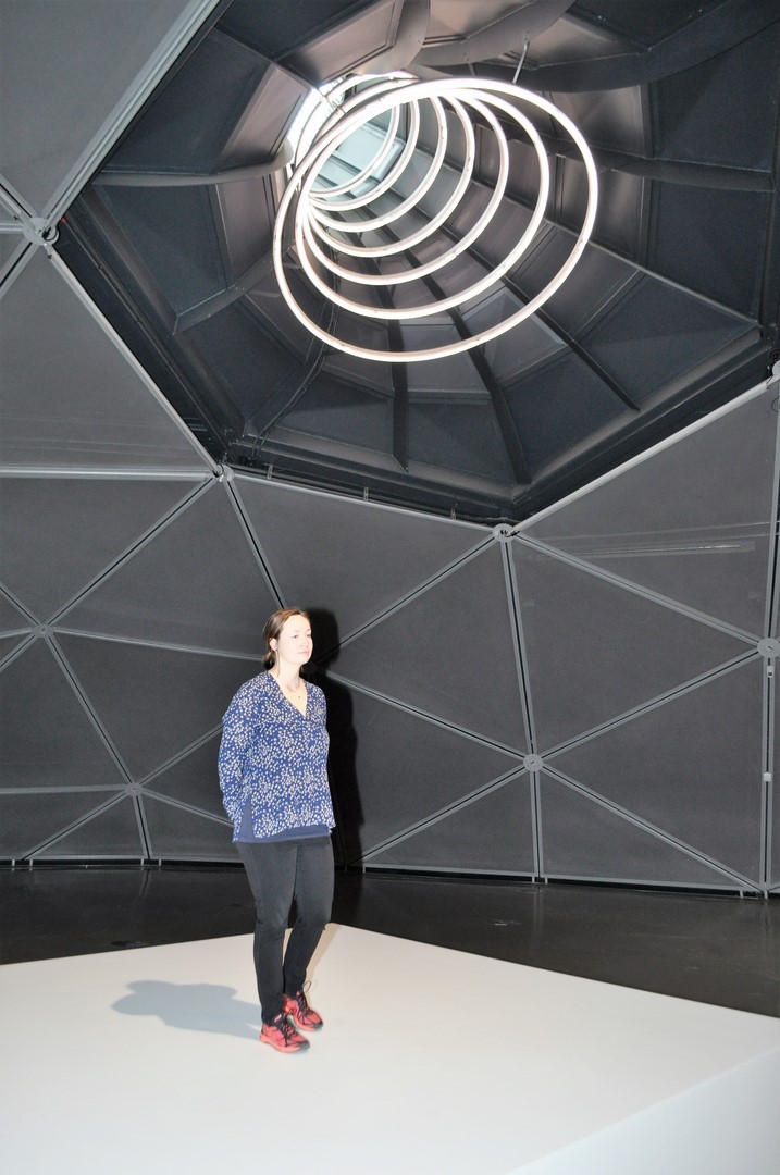 Für mich war wichtig, dass es ein Experiment ist und ich Sachen machen konnte, die ich sonst nicht mache. Ich wollte etwas Neues realisieren. So versuchten Günther Holler-Schuster und ich mit dem Raum umzugehen, ihm eine Festigkeit und Prägnanz zu geben, haben versucht, diesen Raum mit Licht und Farbe in den Griff zu bekommen. Denn mit seiner ‚halben Höhe‘ und den Spiralen war es eine gewaltige Vorgabe – kein Ende kein Anfang.