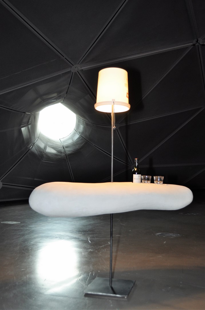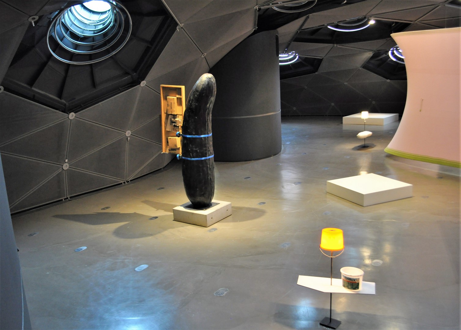 Diese bespielt der Künstler zusammen mit Kurator Günther Holler-Schuster mit Werken, welche die Grenze zwischen den Kategorien Kunstwerk und Gebrauchsgegenstand verschwimmen lassen, wie etwa beim Weltraumschwitzer.