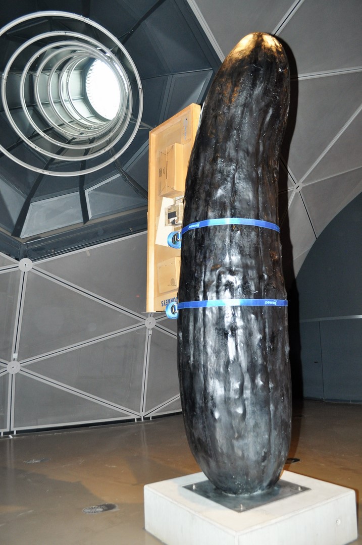 Großes Beitragsfoto: Erwin Wurm – Wurstsemmel mit Gurkerl auf liegender Figur (Foto Reinhard Sudy)