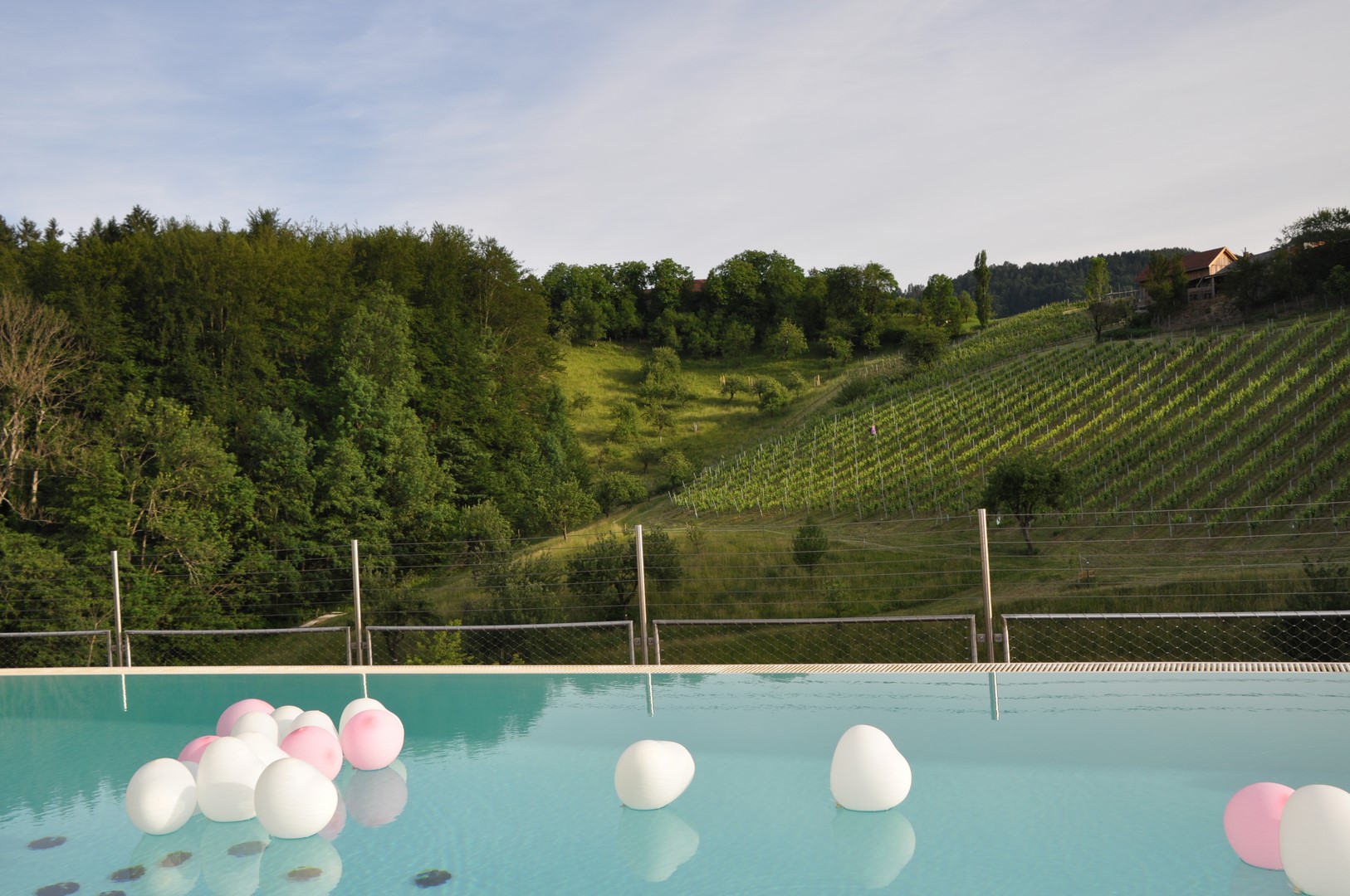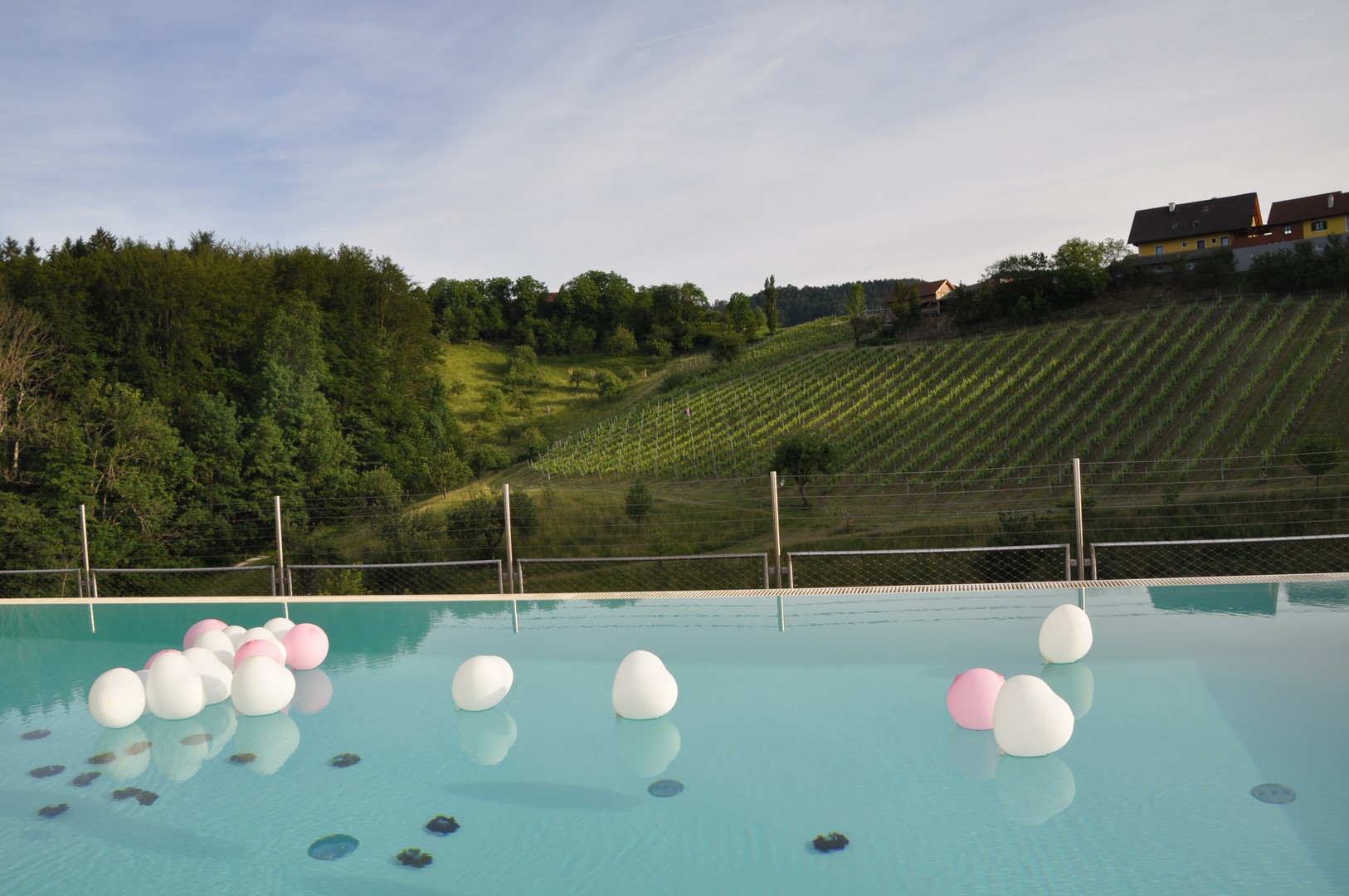 Moderatorin & Schauspielerin Barbara Kaudelka begrüßte die beiden Gastgeber Topwinzer Walter Polz und den Direktor vom Gut Pössnitzberg Rainer Ogrinigg. Danach amüsierten sich die Gäste bei köstlichen steirischen Grillspezialitäten, coolem DJ- Sound und dem Live Act „Groove Cafe“ bis spät in die Nacht. Sehr beliebt war auch die Poolbar im Weingartenpool.