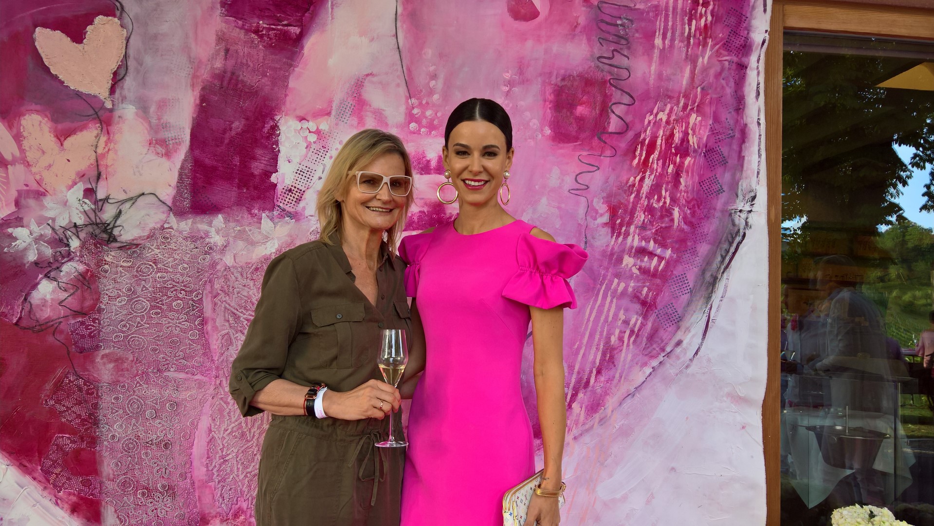 Hedi Grager und Kerstin Lechner, die in „The Fashion Deli – Sterngasse 4 – PINK&WHITE Sommerfest am Gut Pössnitzberg mit STYLE UP YOUR LIFE! (Foto Reinhard Sudy)