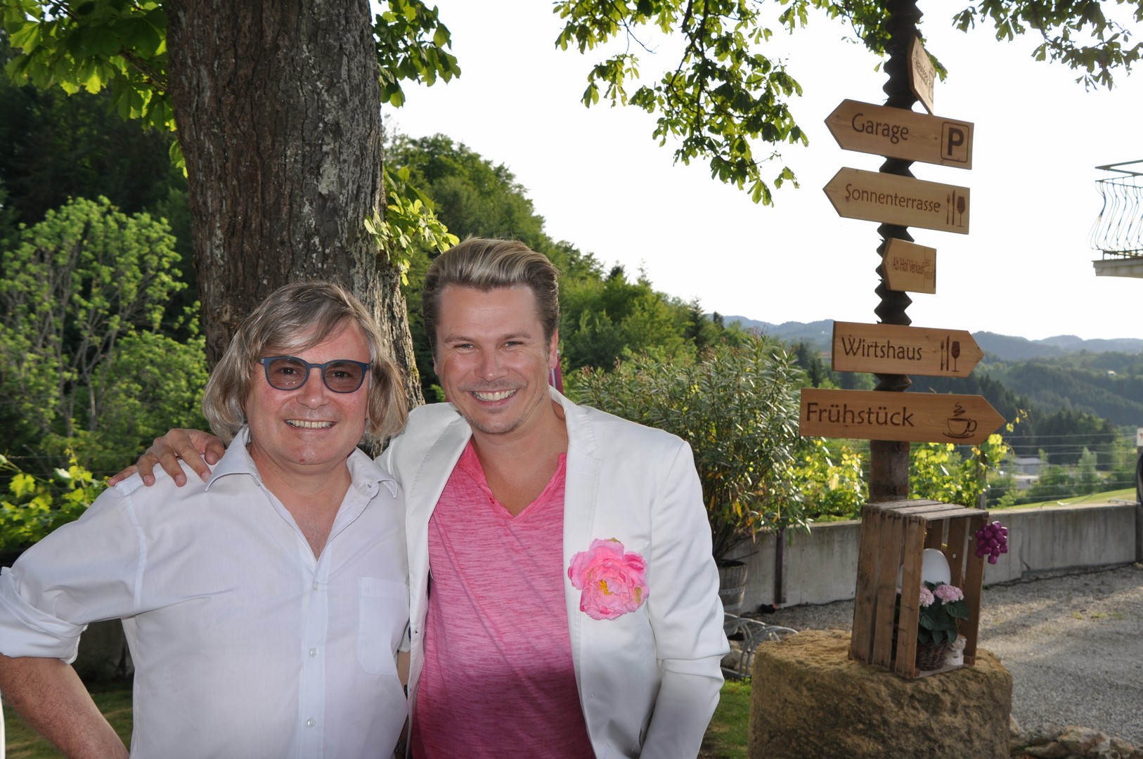 Rainer Ogrinigg, Direktor vom Gut Pössnitzberg, und Topwinzer Walter Polz begrüßten die Gäste ihrer PINK&WHITE Party herzlich (Fotos Michaela Scheurer Philipp Enders)
