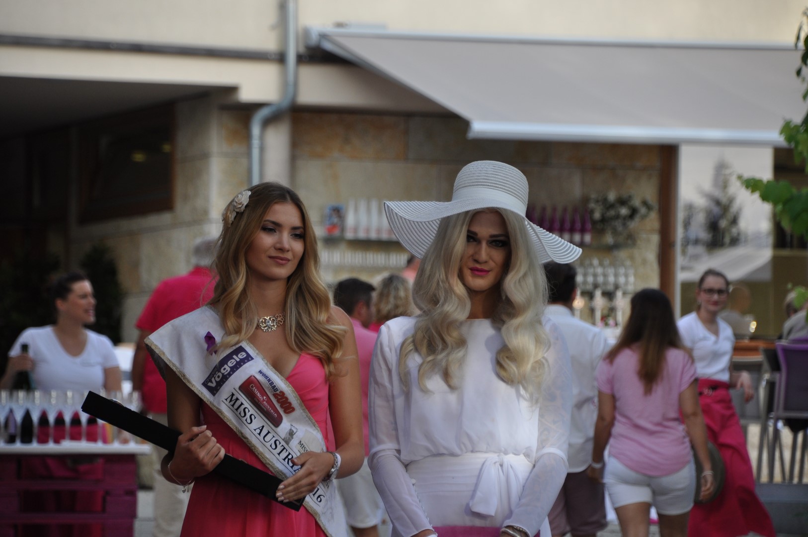 Miss Austria Dragana Stankovic mit Drag Queen Gloria Hole – PINK&WHITE Sommerfest am Gut Pössnitzberg mit STYLE UP YOUR LIFE! (Foto Reinhard Sudy)