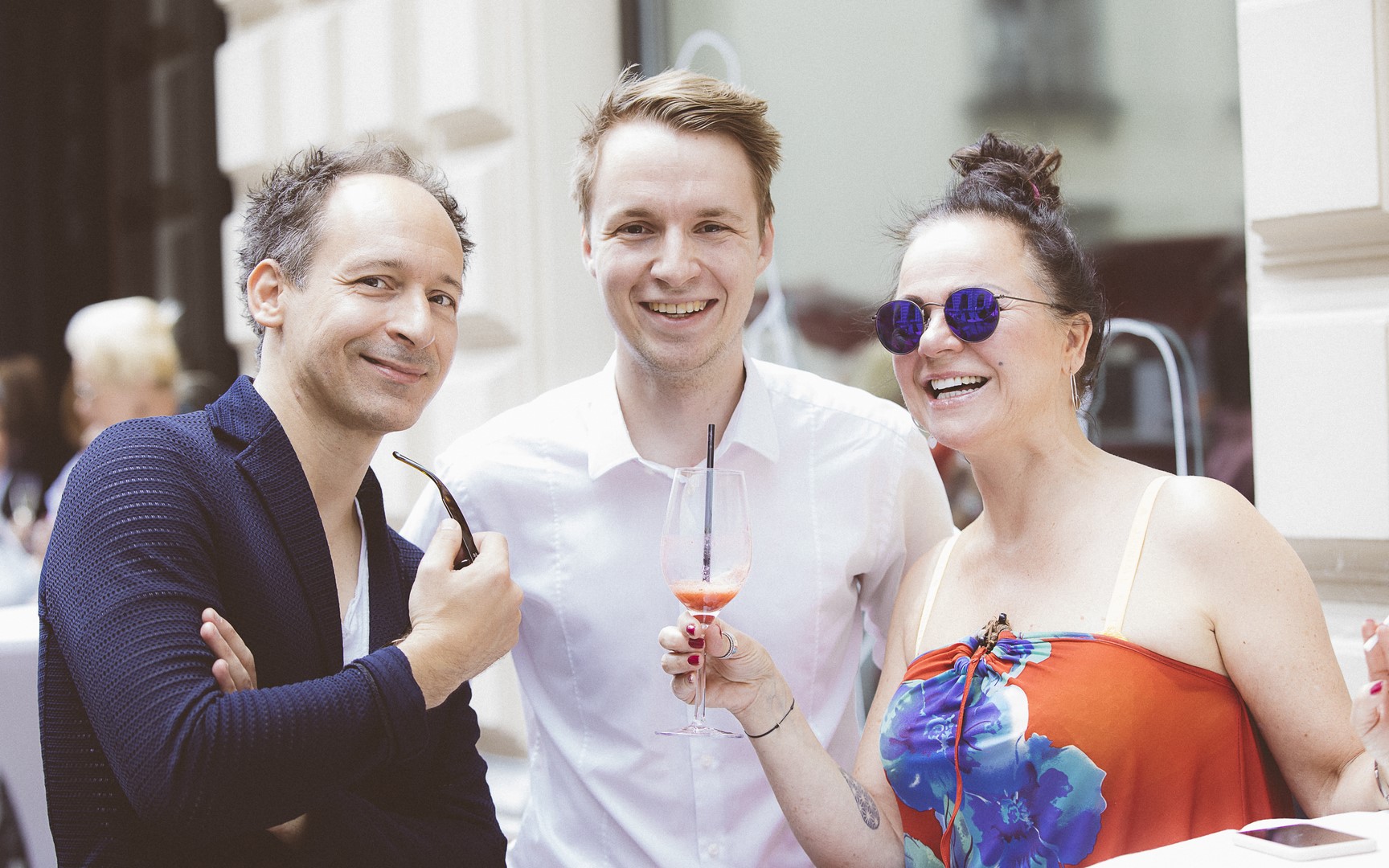 Promi-Friseur Dieter Ferschinger, Journalistin und Bloggerin Hedi Grager sowie PR-Lady Andrea Stanitznig bei der Eröffnung des Cuisino Gastgartens (Foto privat)