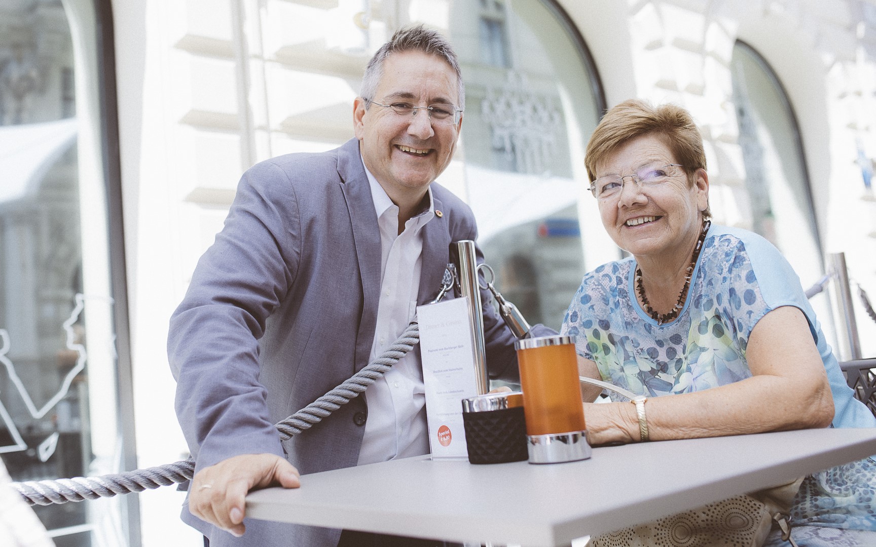 Eis-König Charly Temmel und Journalistin und Bloggerin Hedi Grager bei der Eröffnung des Cuisino Gastgartens (Foto Casinos Austria/Marija Kanizaj)