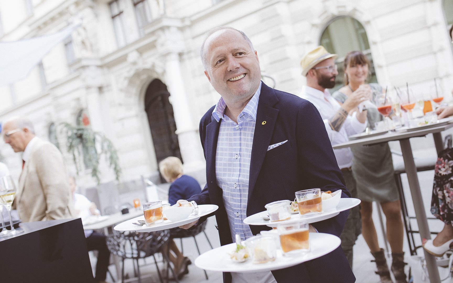 Grawe-Aufsichtsrat Franz Harnoncourt-Unverzagt bei der Eröffnung des Cuisino Gastgartens (Foto Casinos Austria/Marija Kanizaj)