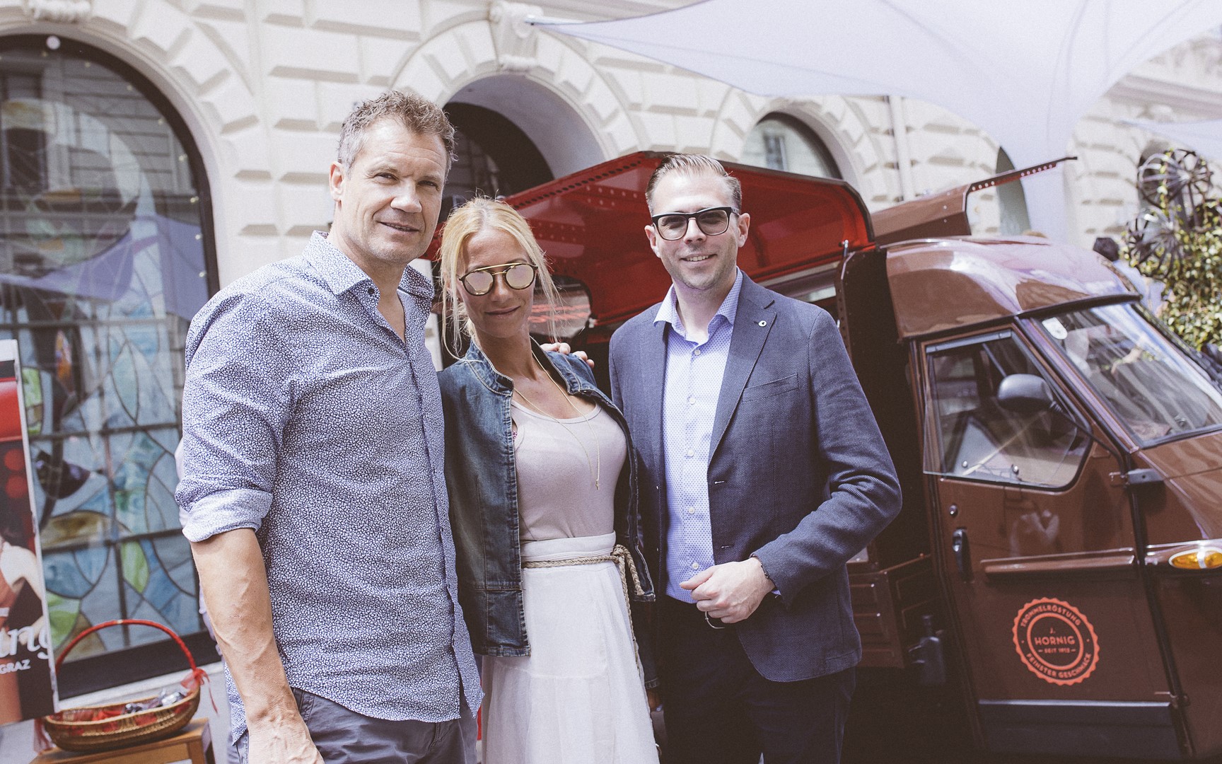 Das erfolgreiche Gastro-Paar und ‚Casino-Nachbarn‘ Judith und Gerald Schwarz sowie Journalistin und Bloggerin Hedi Grager ließen sich die Eröffnung des Gastgartens des Casinos Graz auch nicht entgehen (Casinos Austria/Marija Kanizaj)
