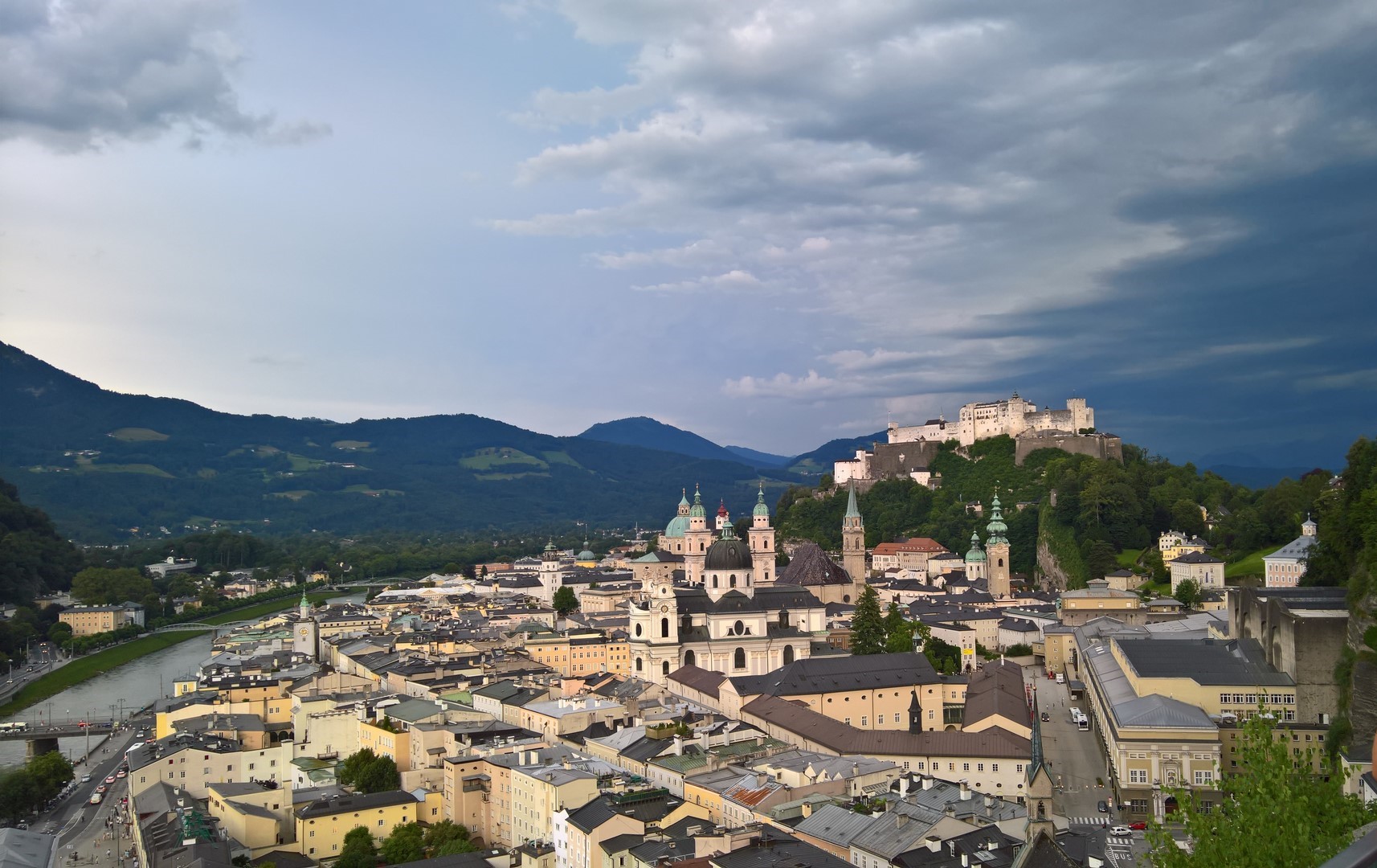 Großes Beitragsfoto: Der Salzburger Mönchsberg mit wunderbarem Blick auf die Stadt ist wohl eine der schönsten Bühnen für Tracht, Trends und Tradition (Foto Hedi Grager)