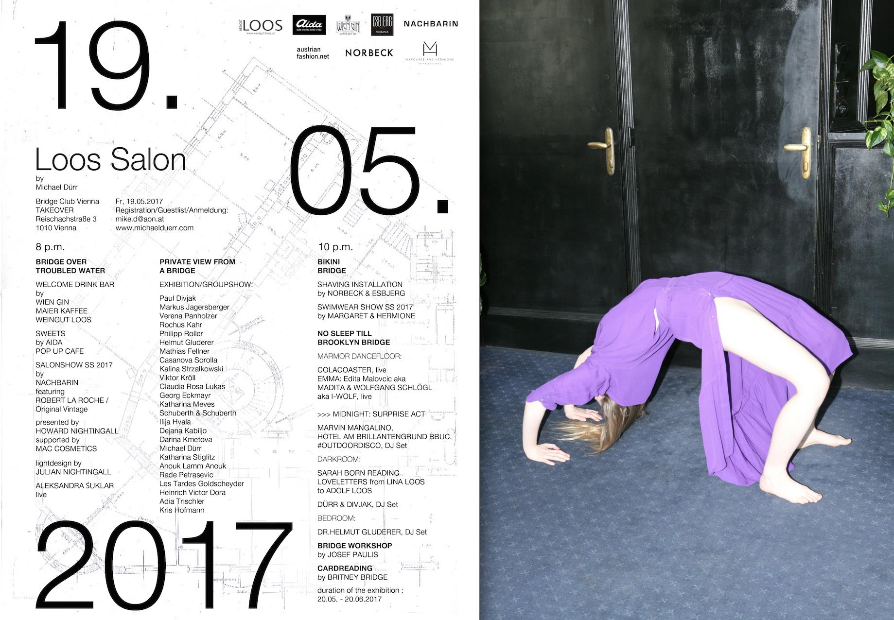So trafen sich bei der Eröffnung im Loos Salon by Michael Dürr Schriftsteller, Modeschöpfer, Maler, Musiker, Schauspieler und Philosophen. Eröffnet wurde der Abend mit einer Fashion-Show der Wiener Avantgarde-Boutique Nachbarin Vienna bei der u.a. Modelle von Hussein Chalayan sowie einige Specials aus den Archiven von Brillendesigner Robert La Roche gezeigt wurden.