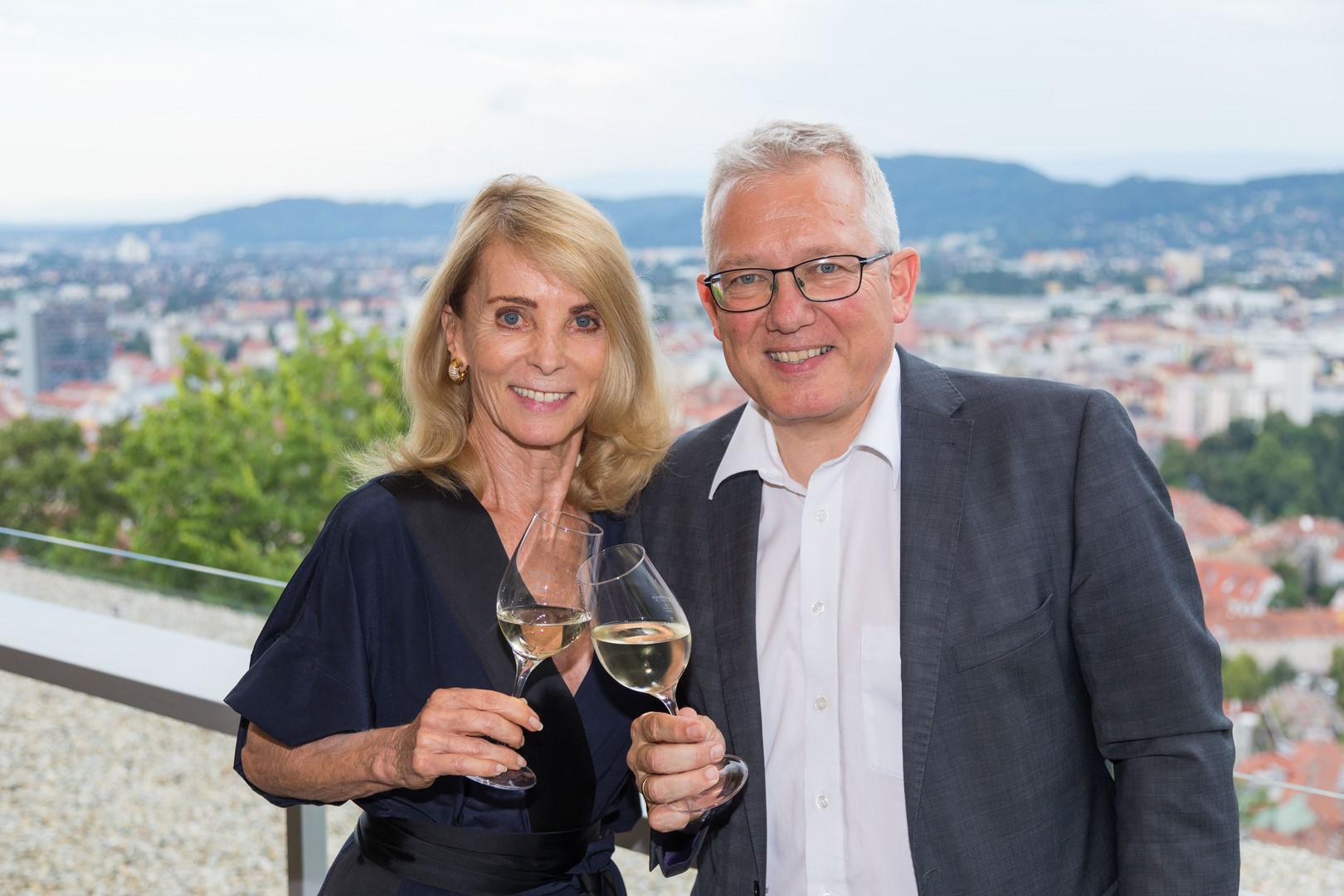 Den ersten Schluck dieses Gelben Muskatellers von Peter Kraus ließen sich u.a. nicht entgehen: Gattin Ingrid Kraus, Genuss-Hauptstadt Graz-Chefin Waltraud Hutter, Sabine Flieser-Just (Präsidentin Steirischer Sommelierverein), Beatrix Drennig (GF Cafe Elefant, Leibnitz), Verena Ennemoser (Präsidialabteilung Stadt Graz), Moderator Michi Wanz, ORF Steiermark-CR Gerhard Koch, Kleine Zeitung-GF Thomas Spann, Weinexperte Alexander Andreadis oder Autor Reinhard Sudy.