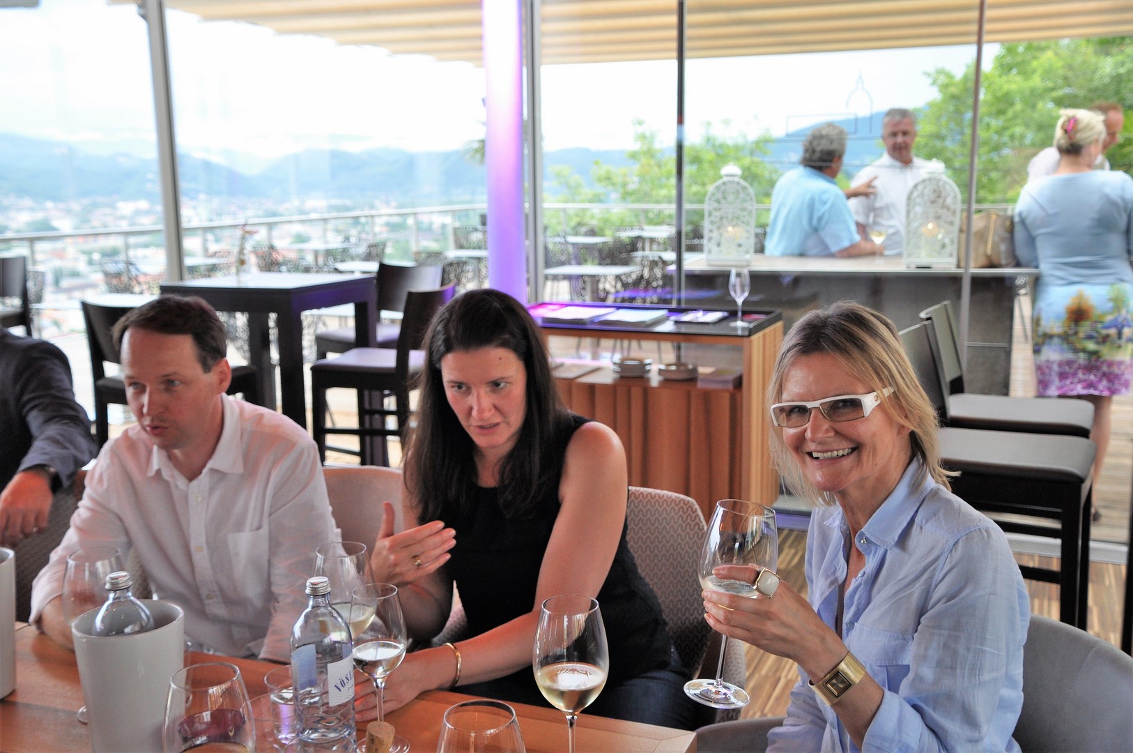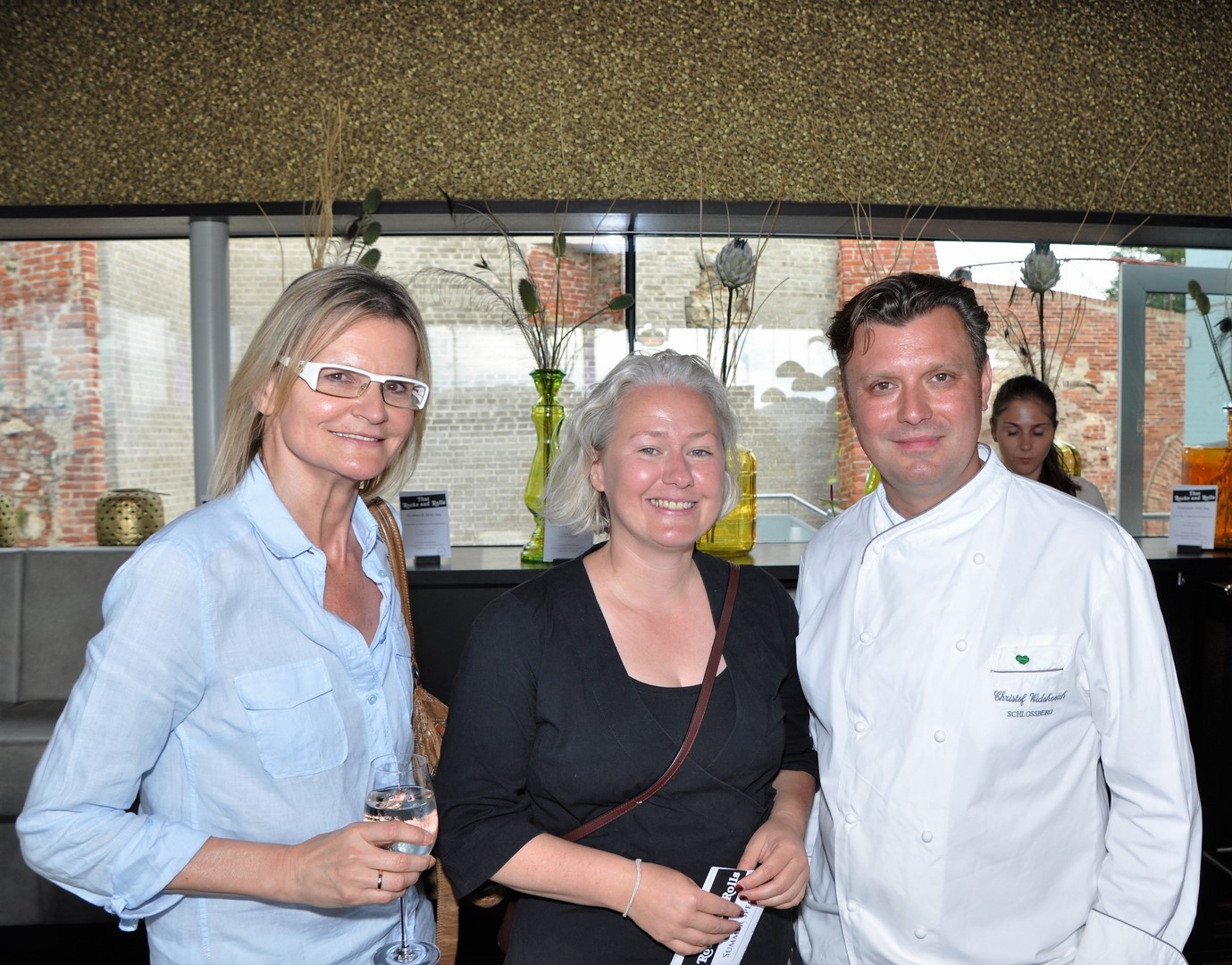 Beatrix und Oliver Drennig mit Journalistin und Bloggerin Hedi Grager – Präsentation des Gelben Muskatellers von Peter Kraus (Foto Reinhard Sudy)