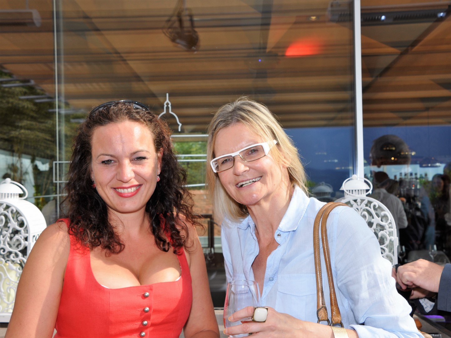 ORF-Lady Kathi Wenusch mit PR-Lady Sylvia Baumhackl – Präsentation des Gelben Muskatellers von Peter Kraus (Foto Reinhard Sudy)