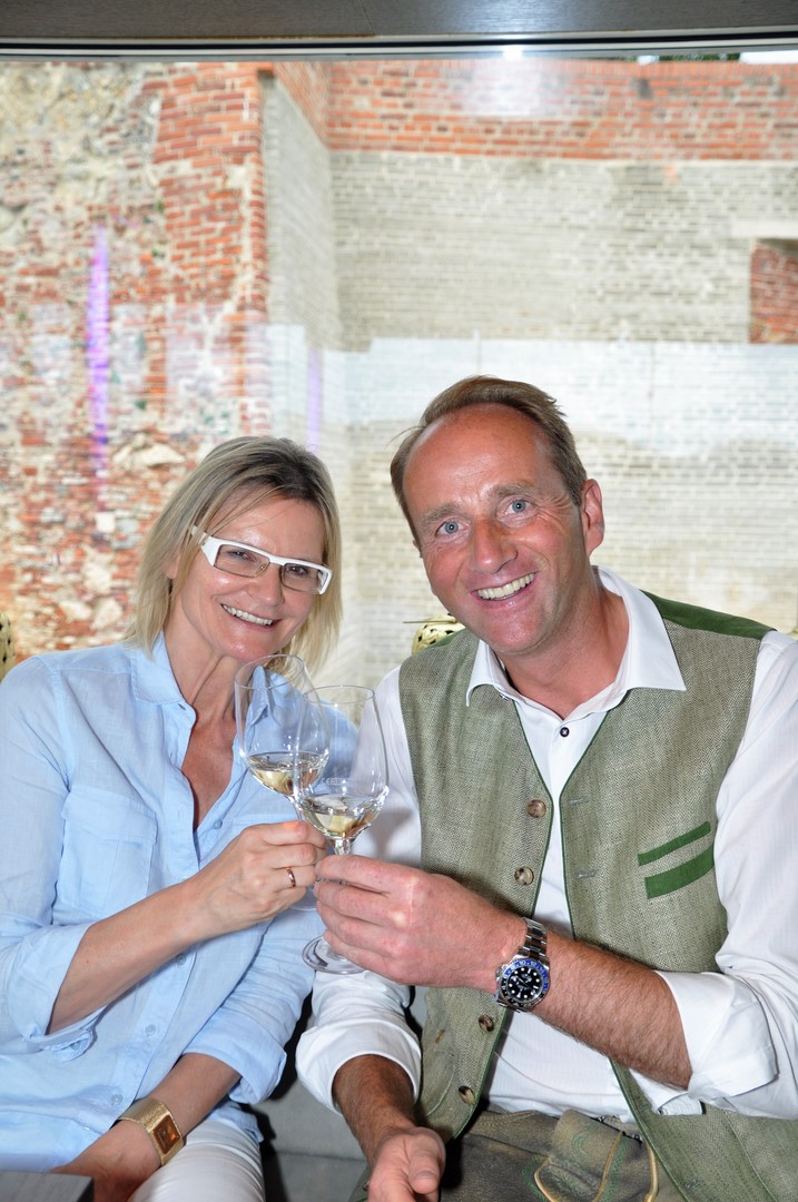 Hedi Grager und Chef-Sommelier Hermann Lankmaier – Präsentation des Gelben Muskatellers von Peter Kraus (Foto Reinhard Sudy)