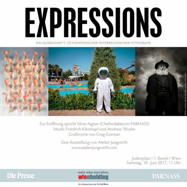 Bis Anfang Juli war die Freiluft-Ausstellung des Atelier Jungwirth ‚Expressions‘ – ein Querschnitt zeitgenössischer österreichischer Fotografie – am Wiener Judenplatz zu sehen. Anlässlich der Teilnahme Österreichs als Gastland beim Umweltfotofestival ‚horizonte zingst‘ wurde im vergangenen Jahr ein repräsentativer Querschnitt Österreichischer Fotografie zusammengestellt.