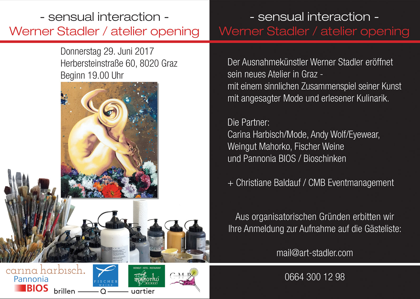 Organisiert wurde der gelungene Eröffnungs-Abend des Ateliers in der Grazer Herbersteinstraße 60 von Christiane Baldauf, CMB Eventmanagement.