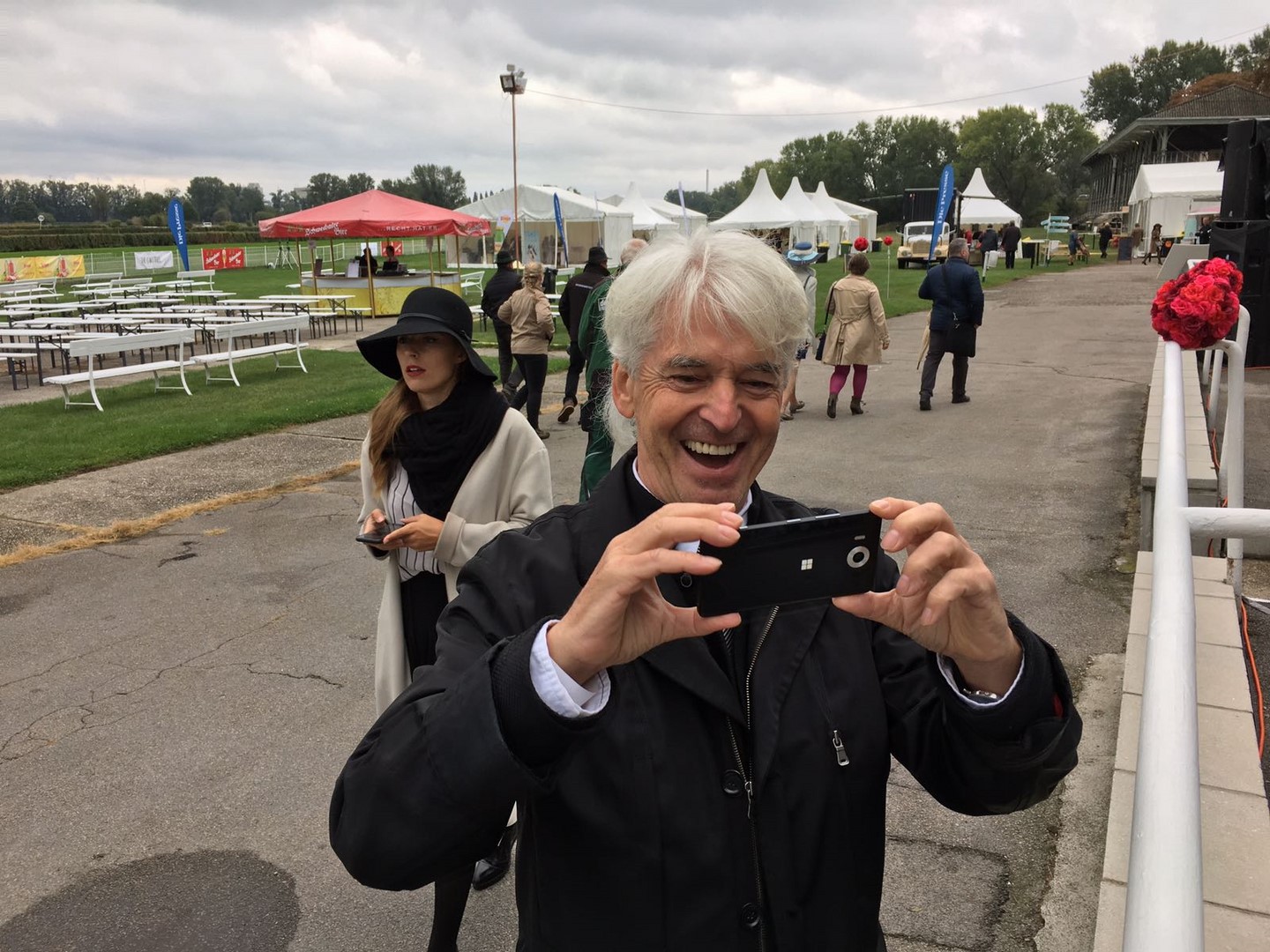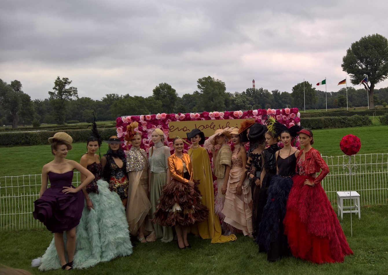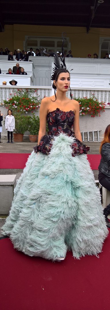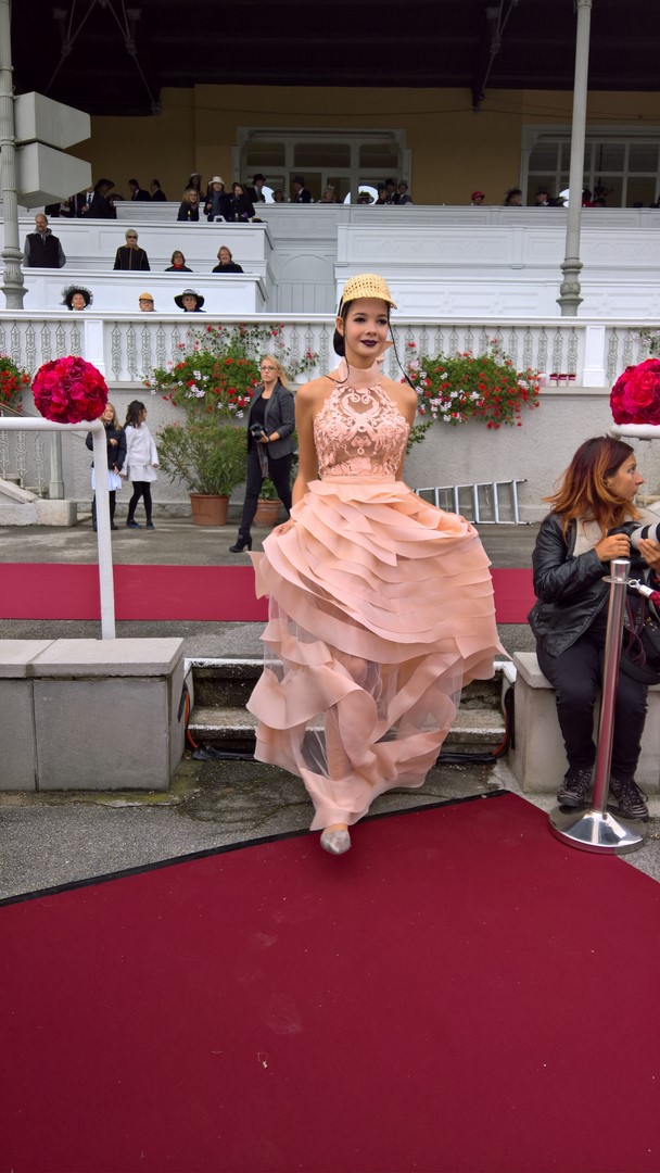 Es war schon eine sehr spezielle Atmosphäre, als mittags die Pferdekutschen mit Ehrengästen wie S.k.u.k.H. Erzherzog Georg Habsburg-Lothringen auf die historische Bahn einfuhren. Gleich danach folgte die von Jardin de Fleurs gestaltete Couture-Show der österreichischen Stardesignerin Eva Poleschinski. Unterstützung holte sie sich in Sachen Hüte von Klaus Mühlbauer & Atelier Renato, Schuhe von Salamander, Haarkreationen von BUNDY BUNDY und Make up von MAC.