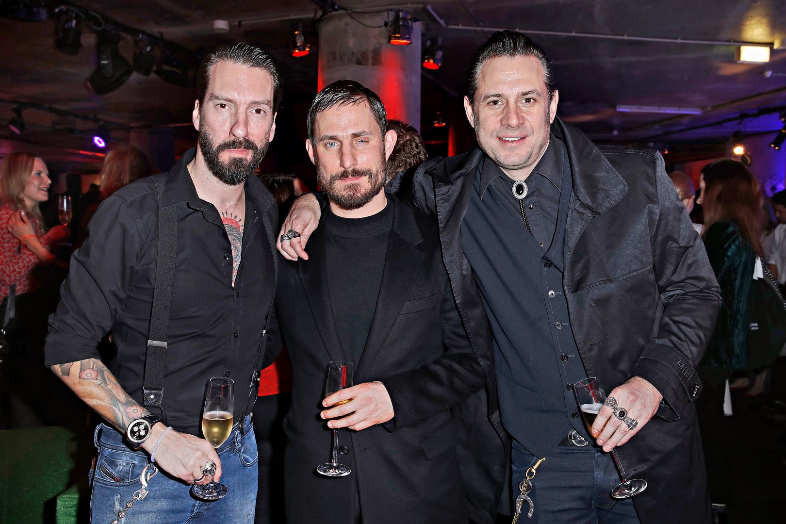 BERLIN, GERMANY – JANUARY 16: Alec Voelkel, Clemens Schick and Sascha Vollmer during the Marc Cain Fashion Show Berlin Autumn/Winter 2018 at metro station Potsdamer Platz on January 16, 2018 in Berlin, Germany. (Photo by Franziska Krug/Getty Images for Marc Cain)
