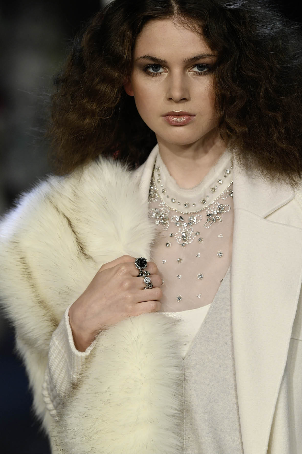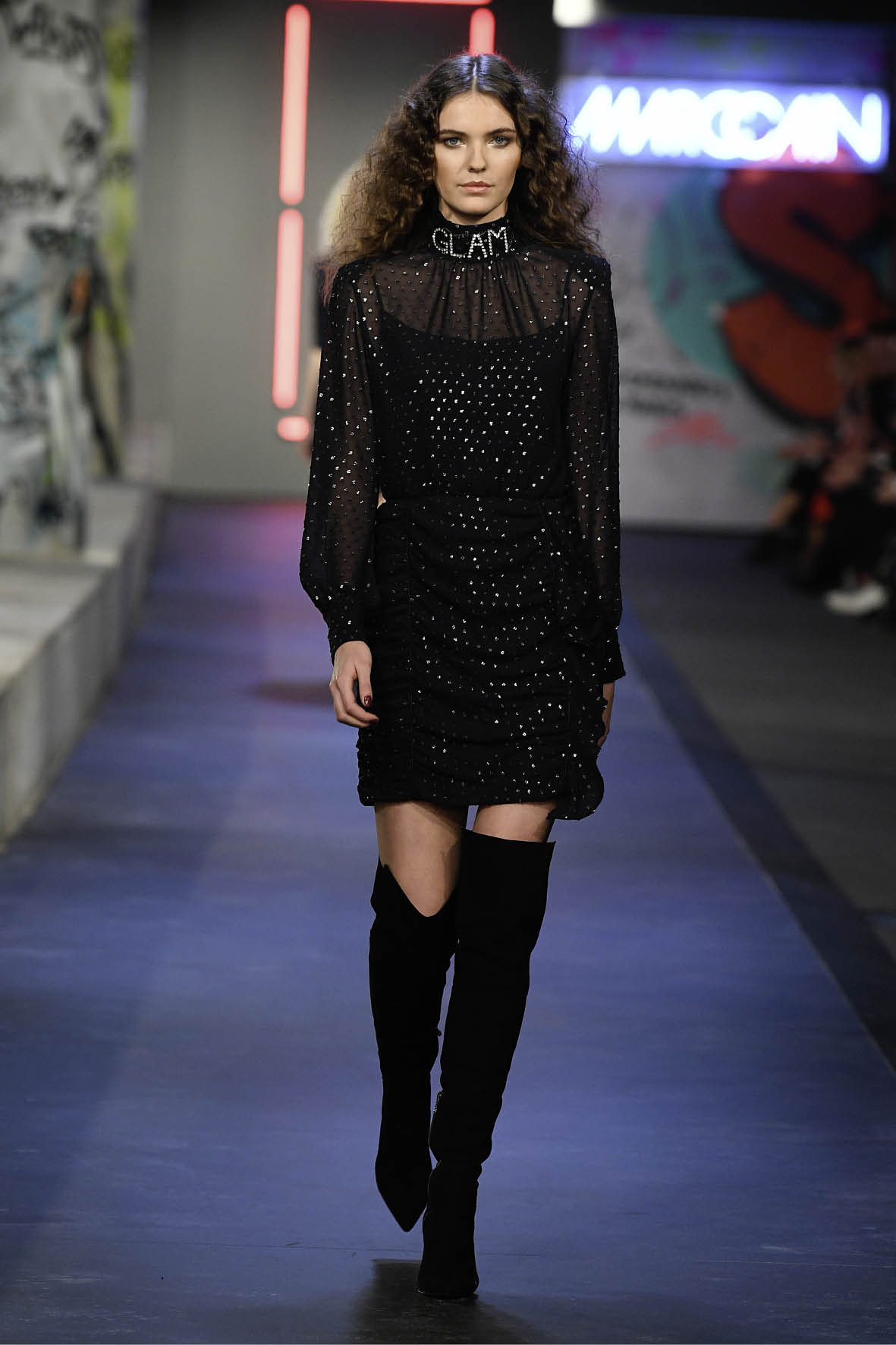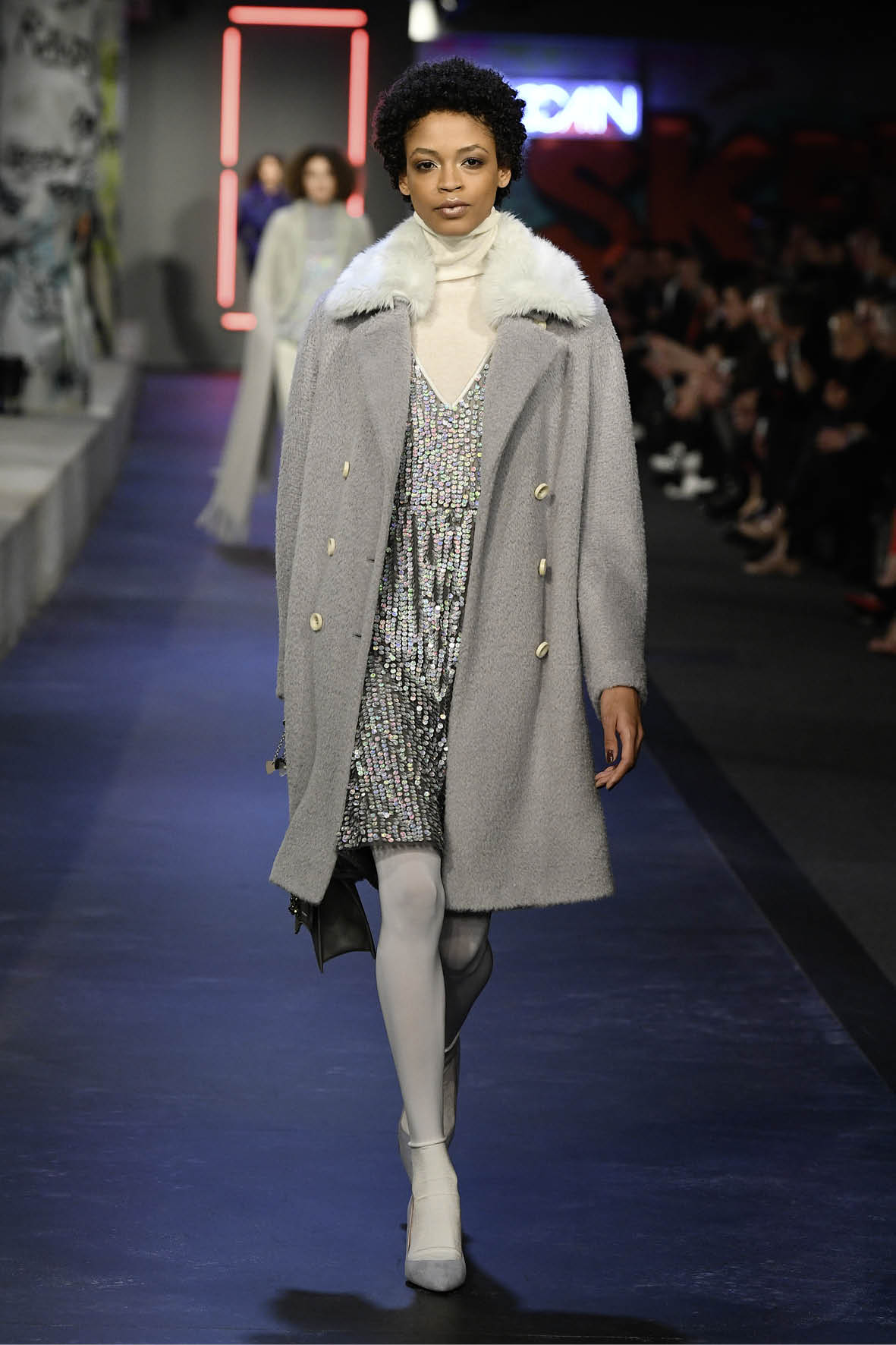 „Ich liebe starke Kollektionen für starke Frauen,“ sagt Karin Veit, seit 1976 Chefdesignerin bei Marc Cain.“ Sie zeigte ihre beliebten Businesslooks, gefolgt von eleganten Mänteln aus hochwertiger Wolle, zu engen Overknees kombinierte Cashmere Pullover, Fake Fur Jacken zu weiten Businesshosen in Cremetönen und coole dunkle Lederjacken. Aber es gab auch Glänzendes wie kurze Glitzer Kleidchen und transparente Chiffon Looks mit Pailletten. Farbliche Hingucker waren auch große Taschen und kleine It-Bags aus hochwertigem Leder. Mit dem Song „You´ve got the Power“ endete dann die großartige Show – und die After-Show-Party begann.
