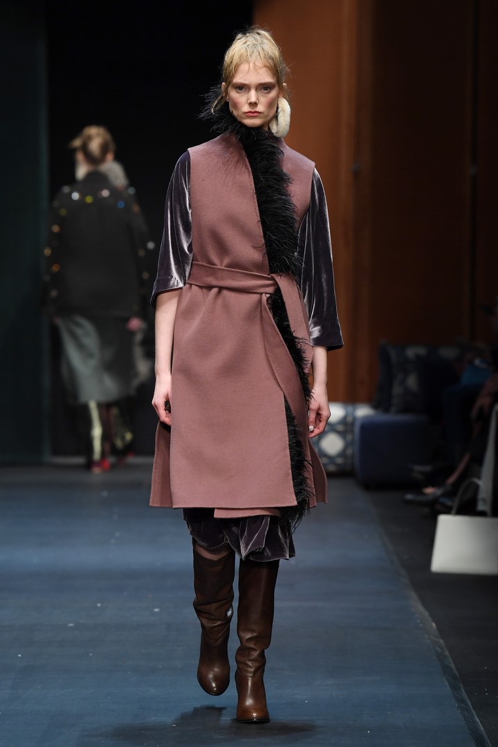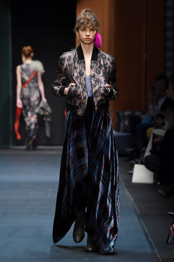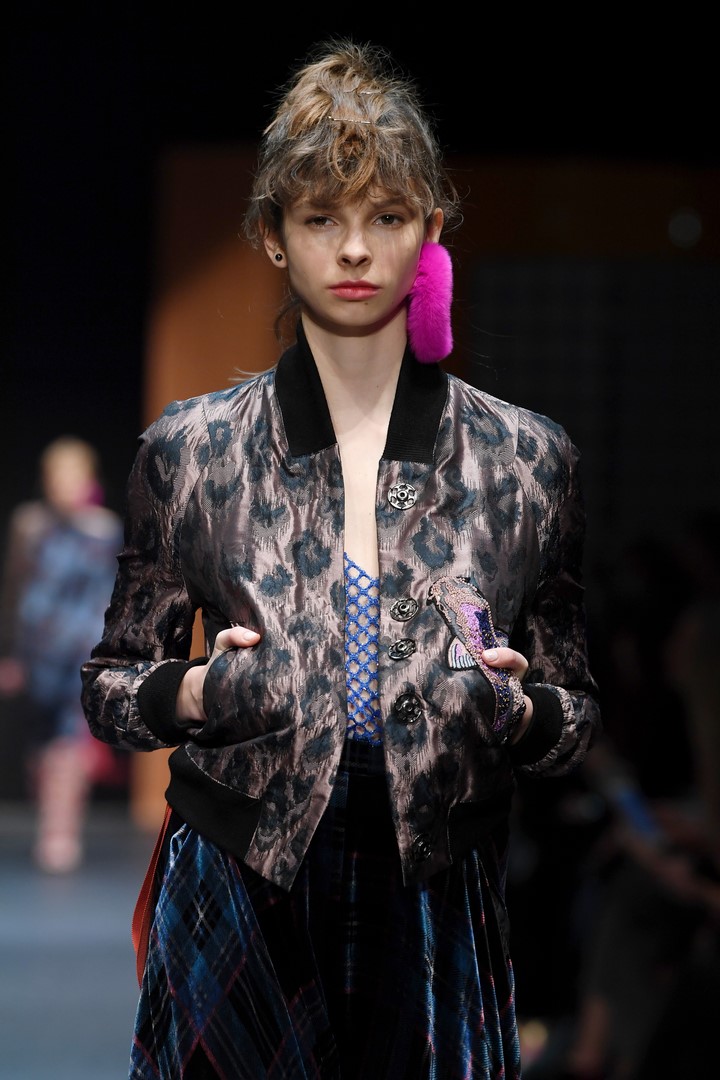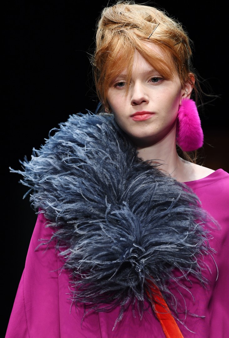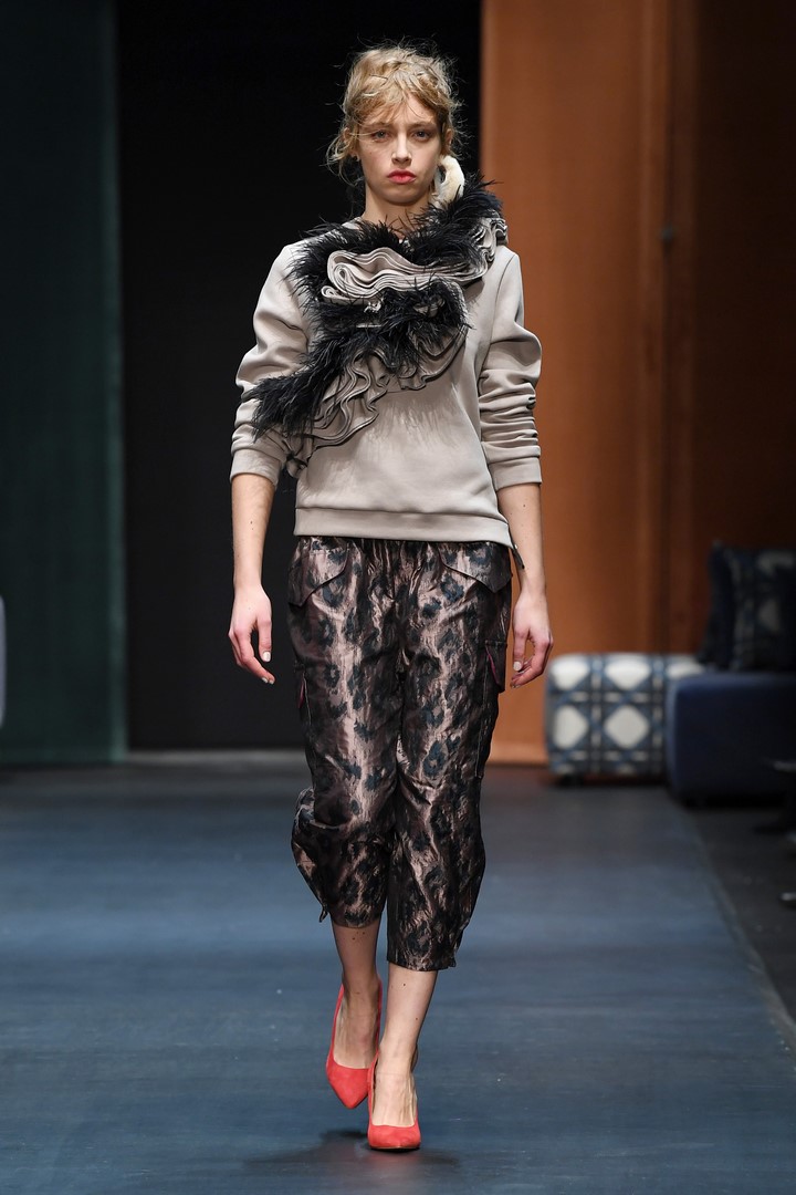 Schon in seiner Sommerkollektion hatte DAWID TOMASZEWSKI das Thema Japan, jetzt geht es in Europa damit weiter. Inspiriert von dem Europa der 60er Jahre, greift der Designer Schnitte und Materialien auf und verbindet diese mit typischen Motiven aus japanischen Gärten. Er kreiert eine Verbindung mit den ikonischen Bauhausprints aus früheren Kollektionen. Die Koi-Motive aus der SS18 Kollektion werden ergänzt durch Kraniche. Hinzu kommen animalische Prints, wie Leopard, Schlange und Krokodil. Gepaart werden diese mit Beerentönen und knalligen Farben, wie pink, orange und azurblau.