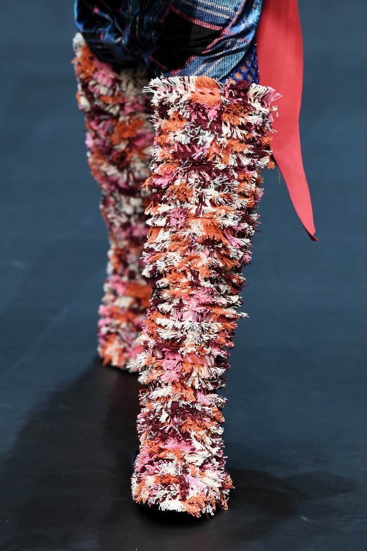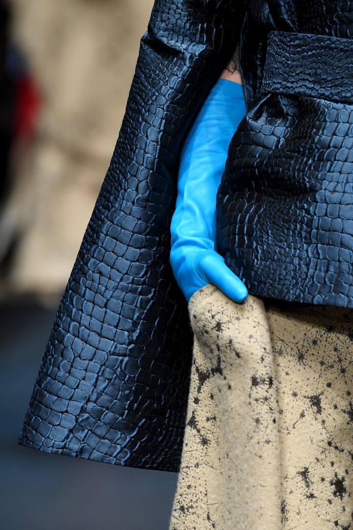 BERLIN, GERMANY – JANUARY 15: A model, fashion detail, walks the runway at the Dawid Tomaszewski show during the MBFW Berlin January 2018 at ewerk on January 15, 2018 in Berlin, Germany. (Photo by John Phillips/Getty Images for MBFW)