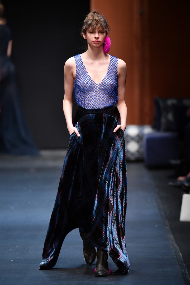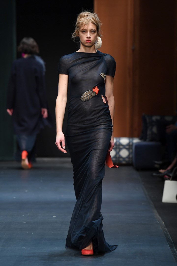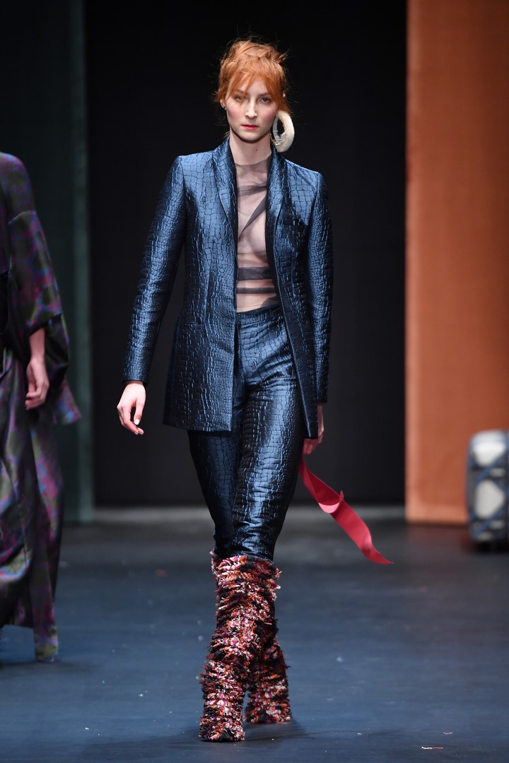 BERLIN, GERMANY – JANUARY 15: A model walks the runway at the Dawid Tomaszewski show during the MBFW Berlin January 2018 at ewerk on January 15, 2018 in Berlin, Germany. (Photo by John Phillips/Getty Images for MBFW)