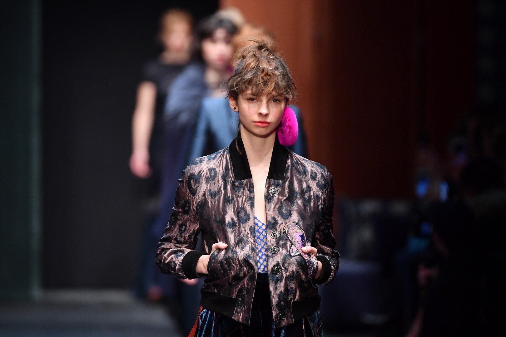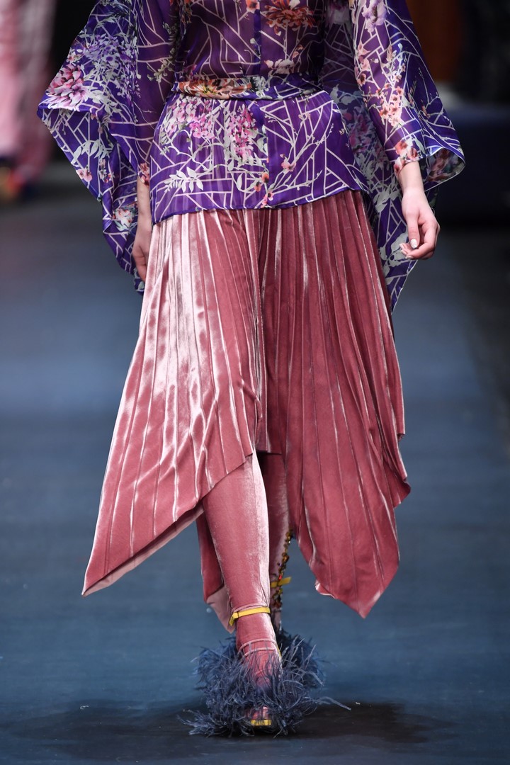 BERLIN, GERMANY – JANUARY 15: A model, fashion detail, walks the runway at the Dawid Tomaszewski show during the MBFW Berlin January 2018 at ewerk on January 15, 2018 in Berlin, Germany. (Photo by Alexander Koerner/Getty Images for MBFW)