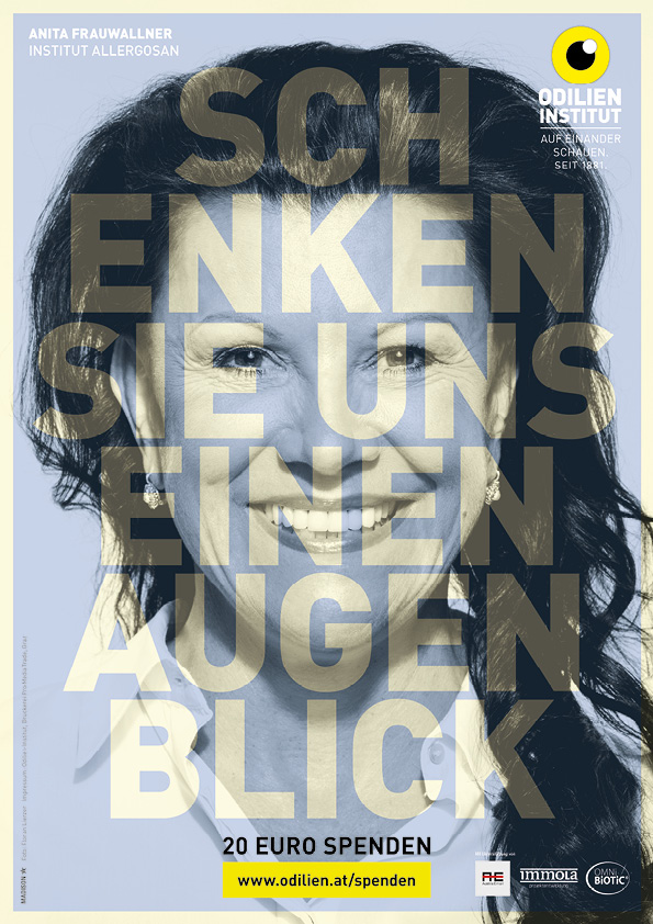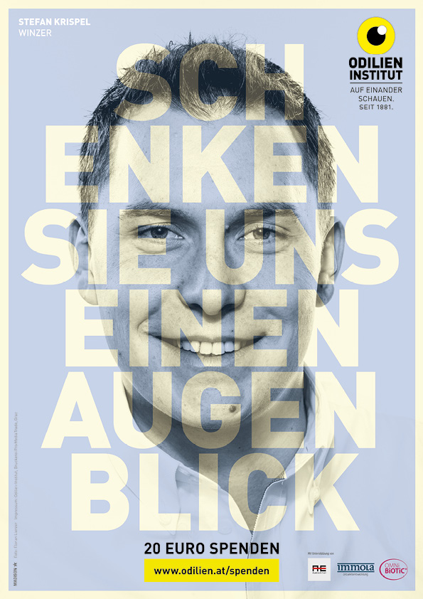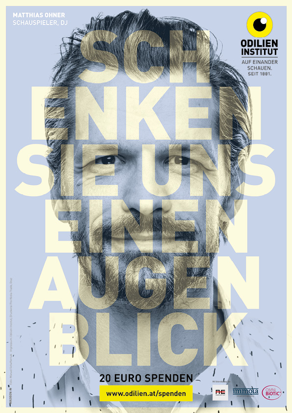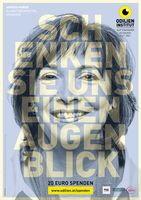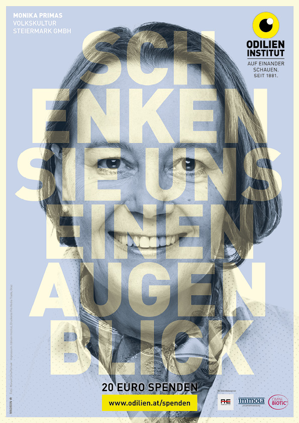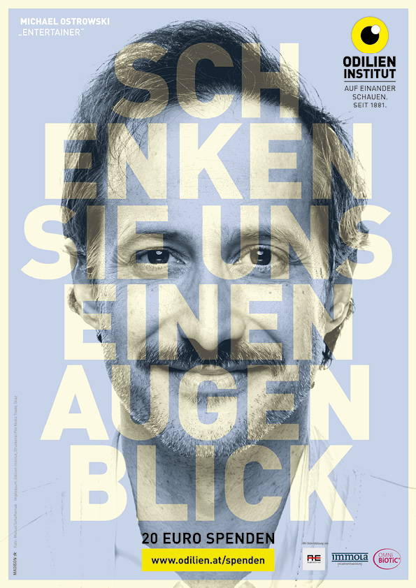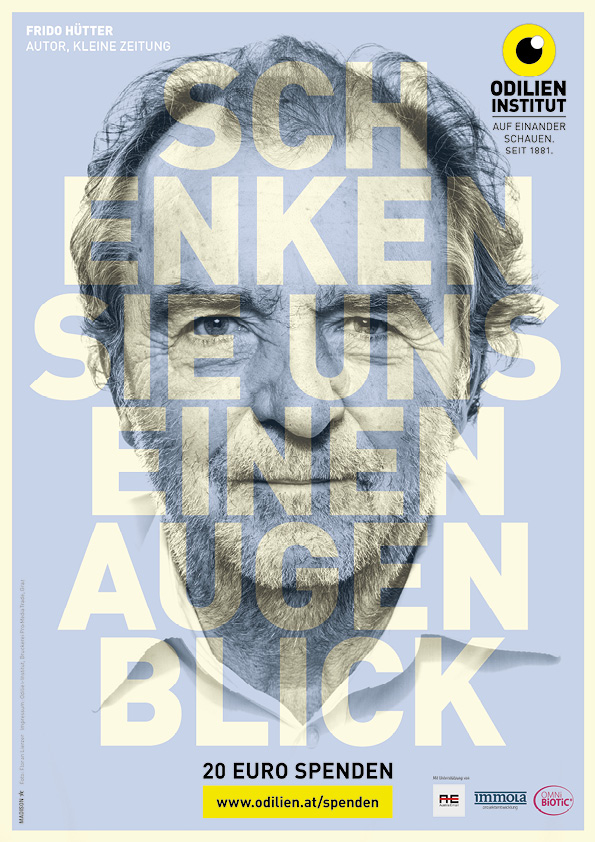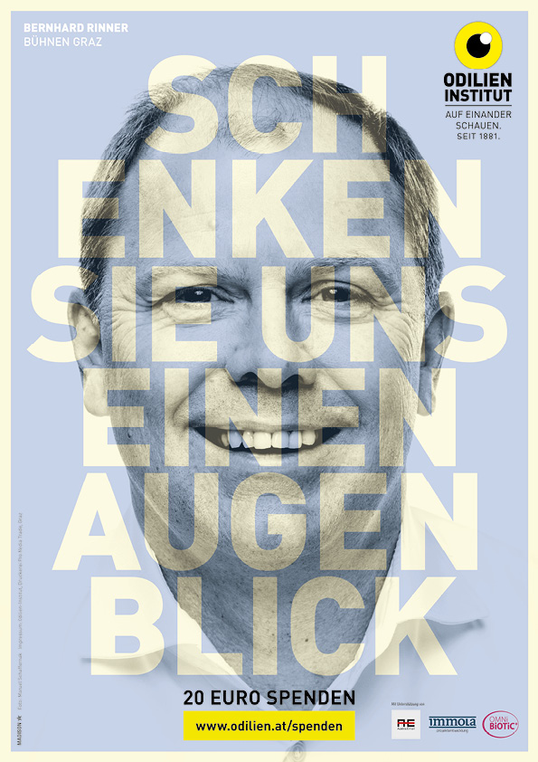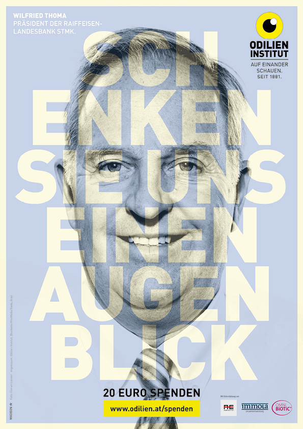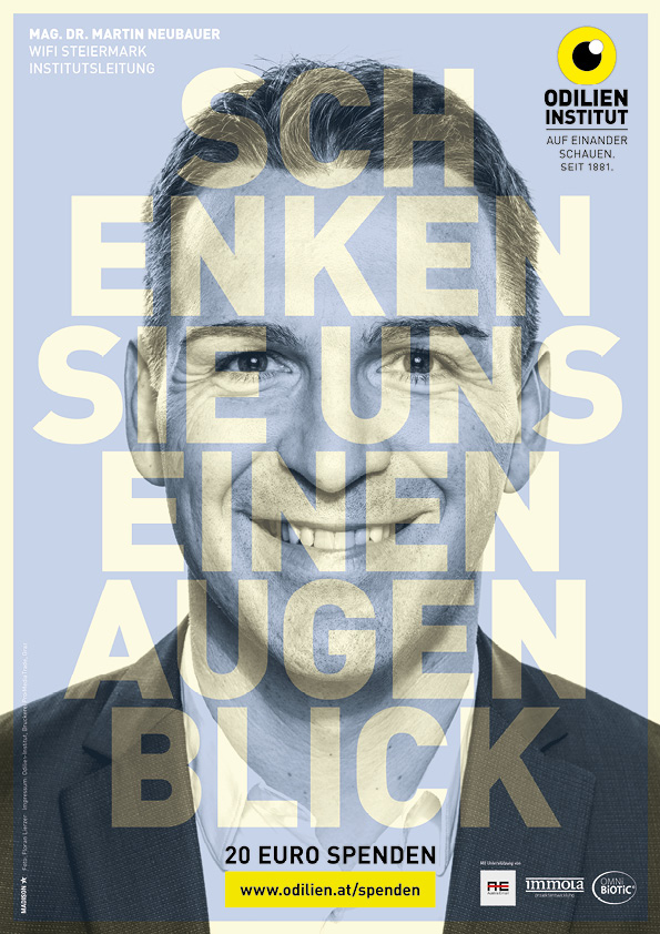 Unter dem Motto ‚Schenken Sie uns einen Augenblick‘ sind auch heuer wieder 13 Prominente als Testimonials für das Odilien-Institut im Einsatz. Mit dem Kampagnenthema wird die Bewusstseinsbildung für die Arbeit des Odilien-Institutes, dem Verein zur Förderung und Betreuung Sehbehinderter und Blinder Steiermarks, fortgesetzt.
