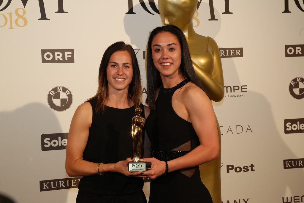 Unvergessen das freudige Ereignis, als im Sommer des Vorjahres die ÖFB-Frauen während der EM in den Niederlanden kämpften und den historischen 3. Platz erreichten. Dafür wurden sie mit der KURIER ROMY® für die „TV-Momente des Jahres“ ausgezeichnet. Stellvertretend für das Team nahmen Torhüterin Manuela Zinsberger, Kapitänin Viktoria Schnaderbeck und Teamchef Dominik Thalhammer den Preis entgegen. Kapitänin Viktoria Schnaderbeck freut sich: „ Es macht uns stolz, dass wir so viele Fans begeistern und unsere Werte wie Bodenständigkeit, Leidenschaft und Demut vermitteln konnten“.