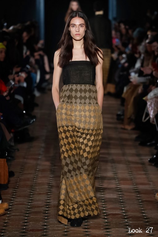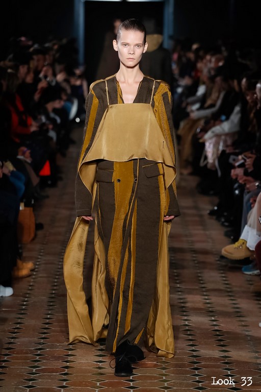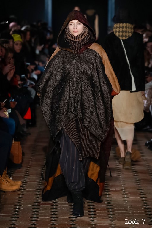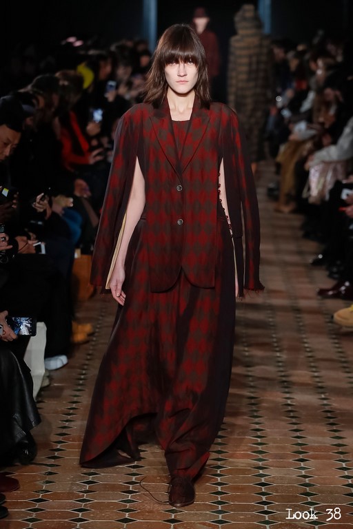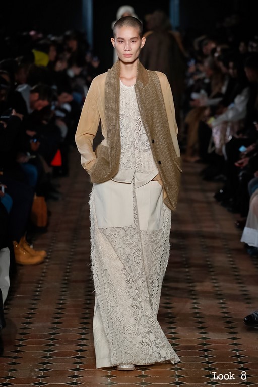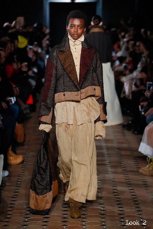 So waren lange Anzugmäntel, die auf dem Rücken in drei lange Teile geteilt waren und in alle Richtungen flatterten, zu sehen, Schuhe waren aus Stoff mit großen Büscheln und auch ein zerknittertes elfenbeinfarbenes Kleid – getragen mit einer losen Spitzenhose, die von unten hervorlugte.