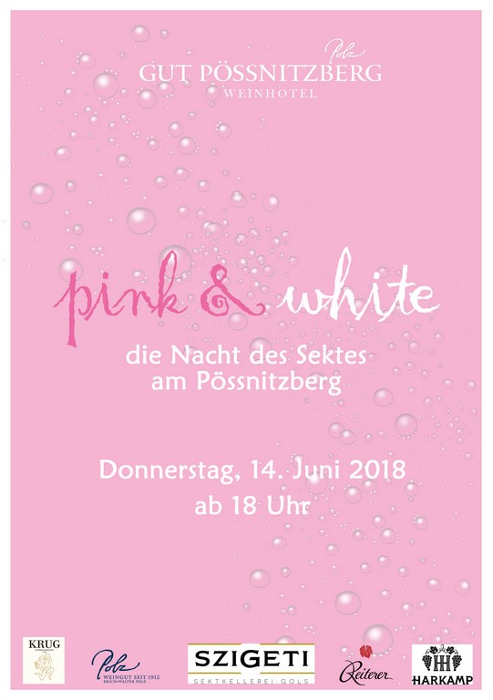 Unter dem Motto Pink & White wurde die Nacht des Sekts am Pössnitzberg gefeiert. Und das mit sechs ausgesuchten Sektwinzern: Erich und Walter Polz, Christian Reiterer und Hannes Harkamp aus der Steiermark, Peter Szigeti aus dem Burgenland, Gustav Krug aus Niederösterreich und Tim Lo Duca vom slowenischen Weingut Ducal. Sie alle boten im schönen Ambiente des Gut Pössnitzberg ihre Kellerschätze zur Verkostung an, erzählten über ihre Philosophie und präsentierten die Unterschiedlichkeiten der Sektregionen.