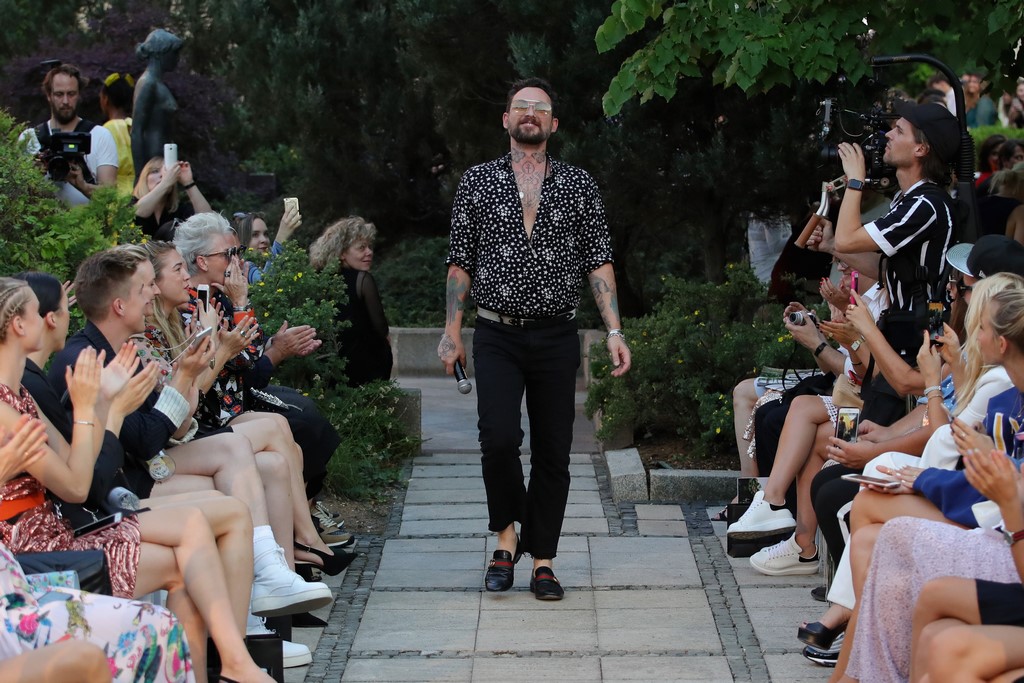 BERLIN, GERMANY – JULY 04: Fashion designer Marcel Ostertag gestures during the Marcel Ostertag show during the Berlin Fashion Week Spring/Summer 2019 at Westin Grand Hotel on July 4, 2018 in Berlin, Germany. (Photo by Andreas Rentz/Getty Images for Marcel Ostertag) *** Local Caption *** Marcel Ostertag