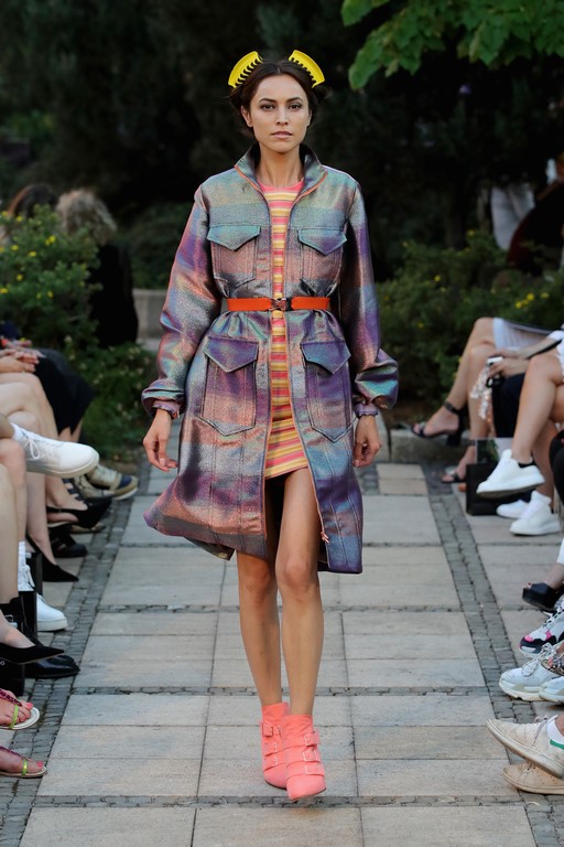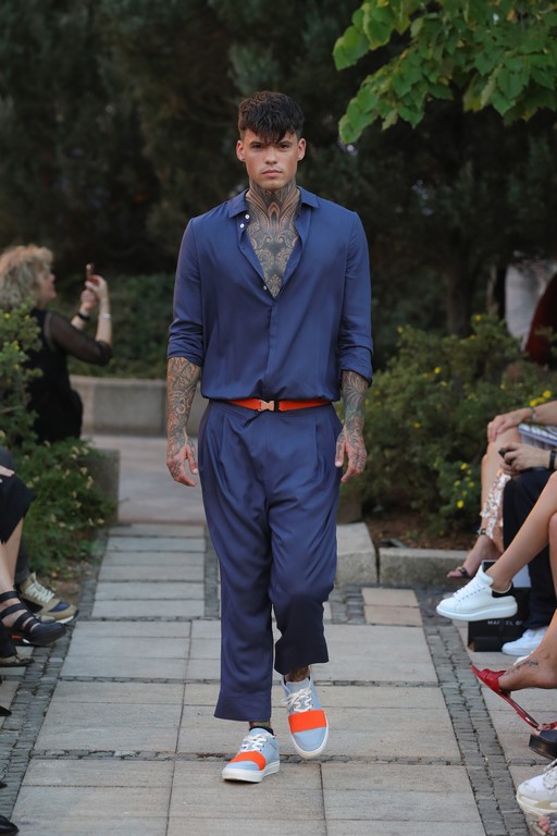 Die neue Kollektion „MUSE“ macht mit frischen Farben und hochwertigen Materialien sofort Lust auf Sommer. Irisblüten zieren als All-Over-Print nicht nur elegante Abendroben sondern auch Herrenblousons und Shorts. Opulente Abendkleider, Seiden-Overalls und Details wie Fransen erinnern an die Siebziger Jahre – ein Jahrzehnt, das Marcel schon immer inspiriert hat.