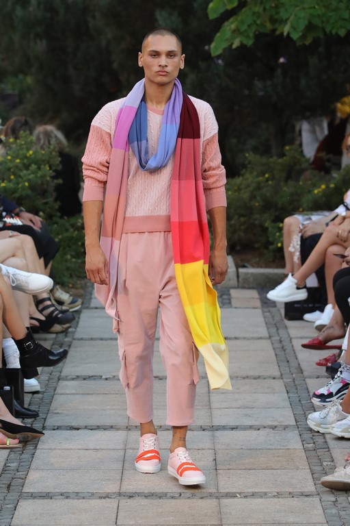 Highlight der Kollektion bilden zwei ganz besondere Kaschmir-Pullover. Mit einem regenbogenfarbenen V-Neck und einem luxuriösen Oversized Strickpullover spricht sich Marcel Ostertag im Zuge des aktuellen Zeitgeists dafür aus, den Unisex-Gedanken zu verbreiten.