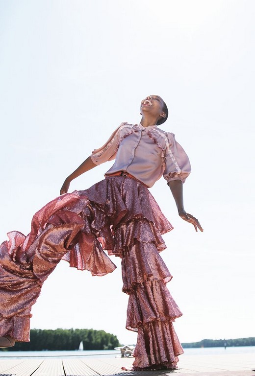 Insbesondere in der Männerkollektion wird deutlich, dass Mode für alle gemacht wird und alle Menschen losgelöst von ihrem Erscheinungsbild gleichberechtigt sind. Marcel Ostertag möchte mit seiner „MUSE“-Kollektion zeigen, dass gemeinsam weiter für die Freiheit gekämpft wird. Die Irisblüte im All-Over-Print und die vierundzwanzig Farben erinnern uns an Toleranz, Hoffnung, Akzeptanz und Begeisterung für die Vielfalt von Lebensformen.
