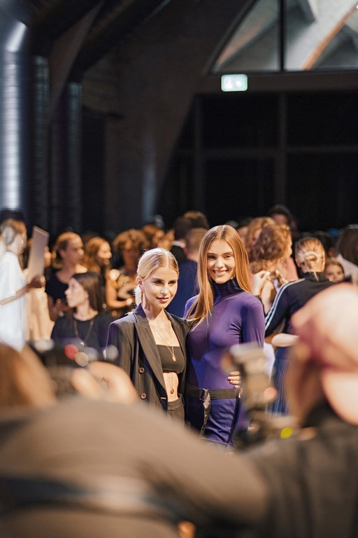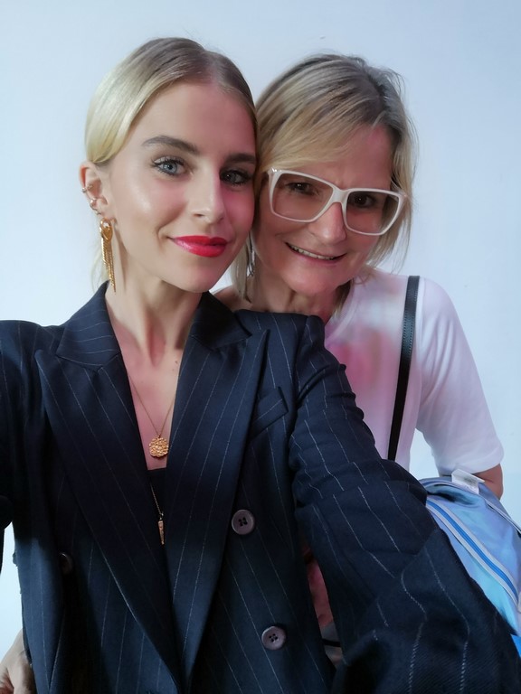 Influencerin Caro Daur mit Journalistin und Bloggerin Hedi Grager auf der Show von Marc Cain Frühjahr/Sommer 2019 am Berliner Westhafen (Foto privat)