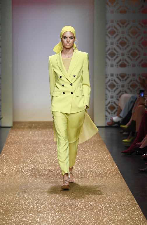 Marc Cain setzt bei seiner Spring/Summer 2019 Kollektion den Fokus auf raffinierte Muster, starke Farbsignale und kräftige Pastelltöne (Photo by Gisela Schober/Getty Images for Marc Cain)