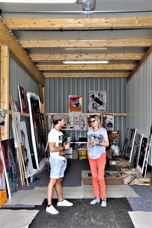 Ich besuchte ihn in seinem Heimatort St. Margarethen a.d. Raab, wo er kürzlich wieder einige Zeit verbrachte. „Ich habe im Oktober in Graz eine Ausstellung und für diese hier schon einige Bilder gemalt,“ erzählt er mir. Dafür hat er sich kurzfristig die geräumige Garage seiner Mutter ‚ausgeborgt‘.
