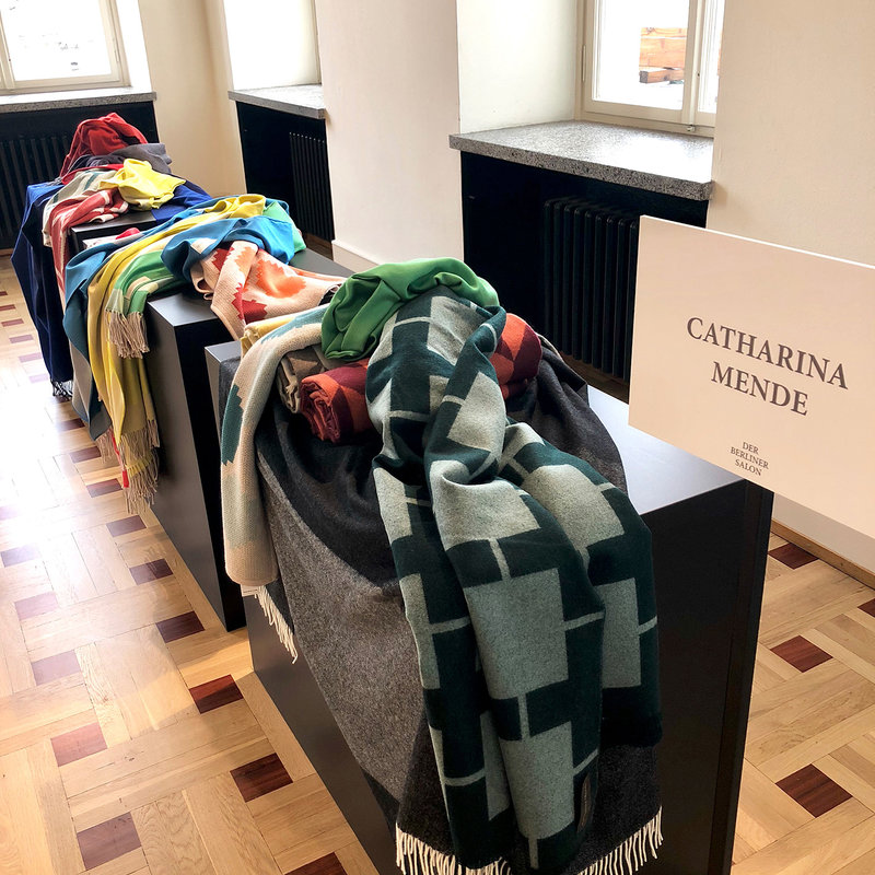 Die Designerin Catharina Mende kreiert Decken für ‚At Home and Elsewhere‘. Ihre Textilien sind aus exquisiten Materialien, sie wärmen nicht nur, sondern werden ein Teil von uns. Auch diesmal präsentierte sie ihre Kreationen wieder im Rahmen des ‚Berliner Salons‘.