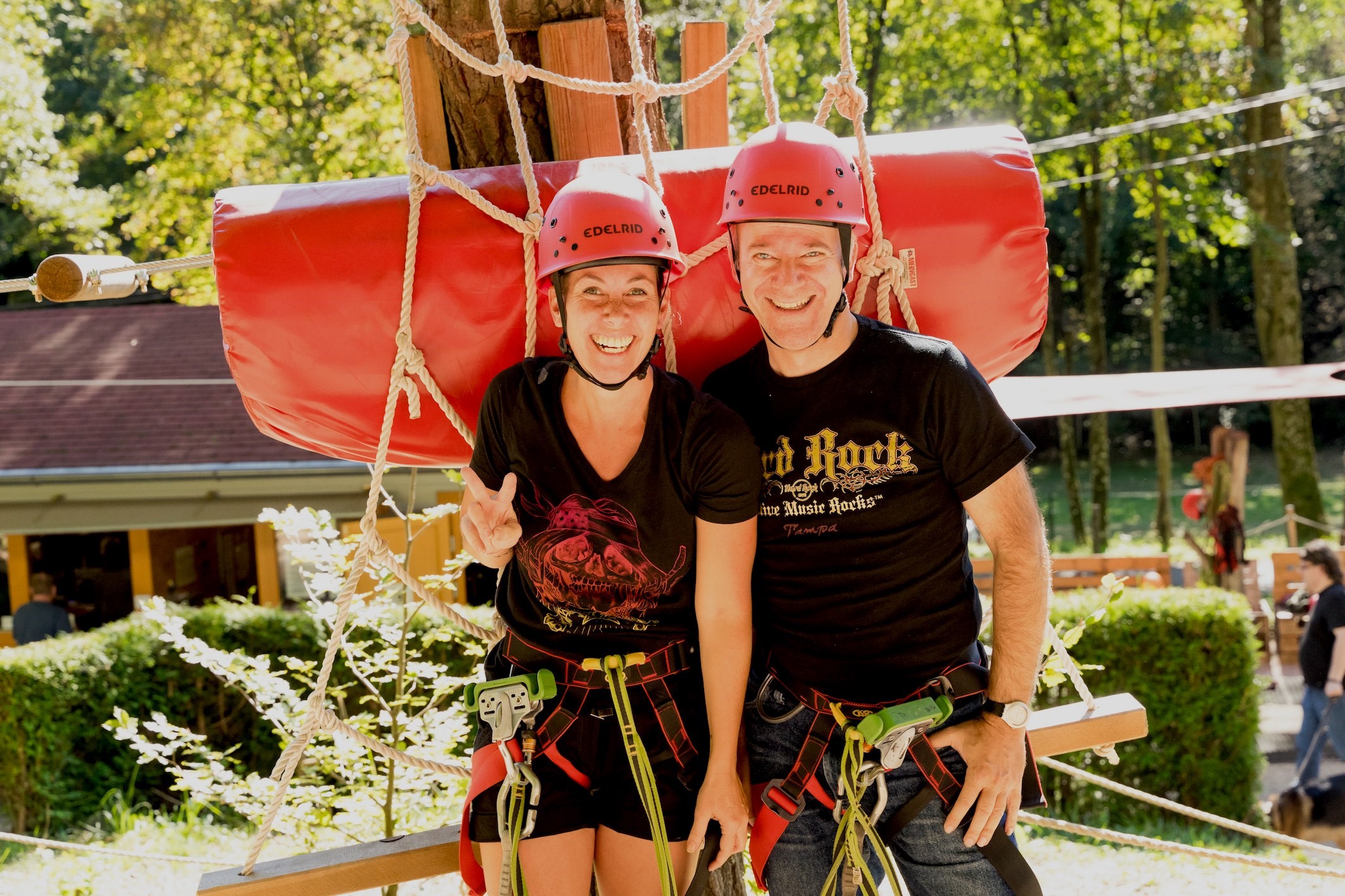 Für Brigadier Gerald Tatzgern sind keine Hindernisse zu groß: „Eigentlich bekämpfe ich Schlepperdelikte – aber von Patricia lasse ich mich gerne in den Kletterpark verschleppen. Hier ist vor allem Teamgeist gefragt und den habe ich bereits seit meiner Zeit bei der Wega intus.“ schmunzelte der Leiter der Zentralstelle zur Bekämpfung der Schlepperkriminalität und des Menschenhandels im Bundeskriminalamt.