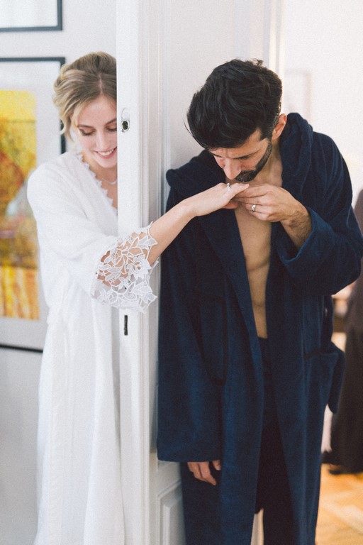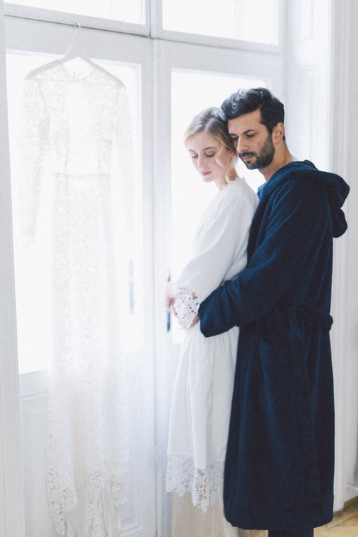 Ihren außergewöhnlichen Sinn für Materialien, Details und Extravaganz hat die großartige Designerin, die erst kürzlich den „TOP OF STYRIA Award“ erhielt, auch bei ihren Bademänteln wieder bewiesen – sie sind einfach perfekt für die speziellen Momente im Leben von Braut und Bräutigam. Sei es vor der Hochzeit beim Styling und feierlichen Ankleiden, beim gemeinsamen Anstoßen mit den Brautjungfern oder nach der Hochzeit beim gemütlichen Frühstück – der Mantel verleiht das richtige Maß an Festlichkeit. Und natürlich eignen sich die Bademäntel wunderbar als Geschenk an das Brautpaar wie auch als Dankeschön an die liebsten Freundinnen.