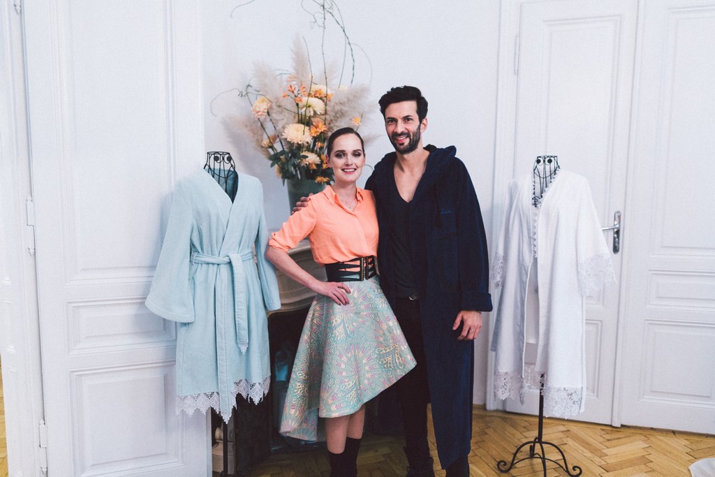 Großes Beitragsfoto: Designerin Eva Poleschinski kreierte in Kooperation mit Vossen elegante Bademäntel. Präsentiert wurden diese von Tennisprofi Julian Knowle sowie von Theresa & Dessy von der Agentur Body & Soul (Foto A Twist Of Lemon)