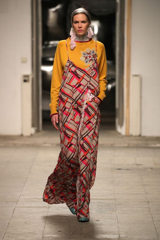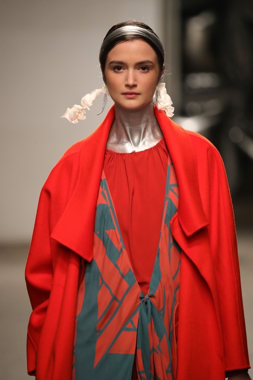 Passend zum Namen “Colour Screens” wurden auch in dieser Saison Bauhaus Prints neu interpretiert, mit kunstvollen Stickereien versehen und durch Farbnuancen in Puder sowie verschiedenen Rot- und Orangetönen zum Leben erweckt. Mit Vielfalt und Farbenpracht, mit abwechslungsreichen Elementen wie Seide, Pailletten, aufwendigen Drucken und Applikationen verleiht Dawid Tomaszewski seinen Schnitten das Gefühl zeitloser Eleganz und Leichtigkeit.