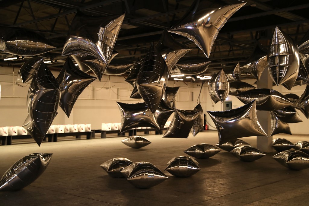Dawid Tomaszewski wollte mit seinen schwebenden Luftkissen ein Gefühl von Freiheit, einem Leben ohne logische Strukturen vermitteln und die Abenteuerlust, sich außerhalb gesellschaftlicher Normen zu bewegen. (Photo by Andreas Rentz/Getty Images for Dawid Tomaszewski)